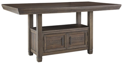 Made of wood, veneers and engineered wood;Grayish brown finish;Counter height design;Double-sided storage base; open shelf over cabinet space;Assembly required,Counter Height Dining Table