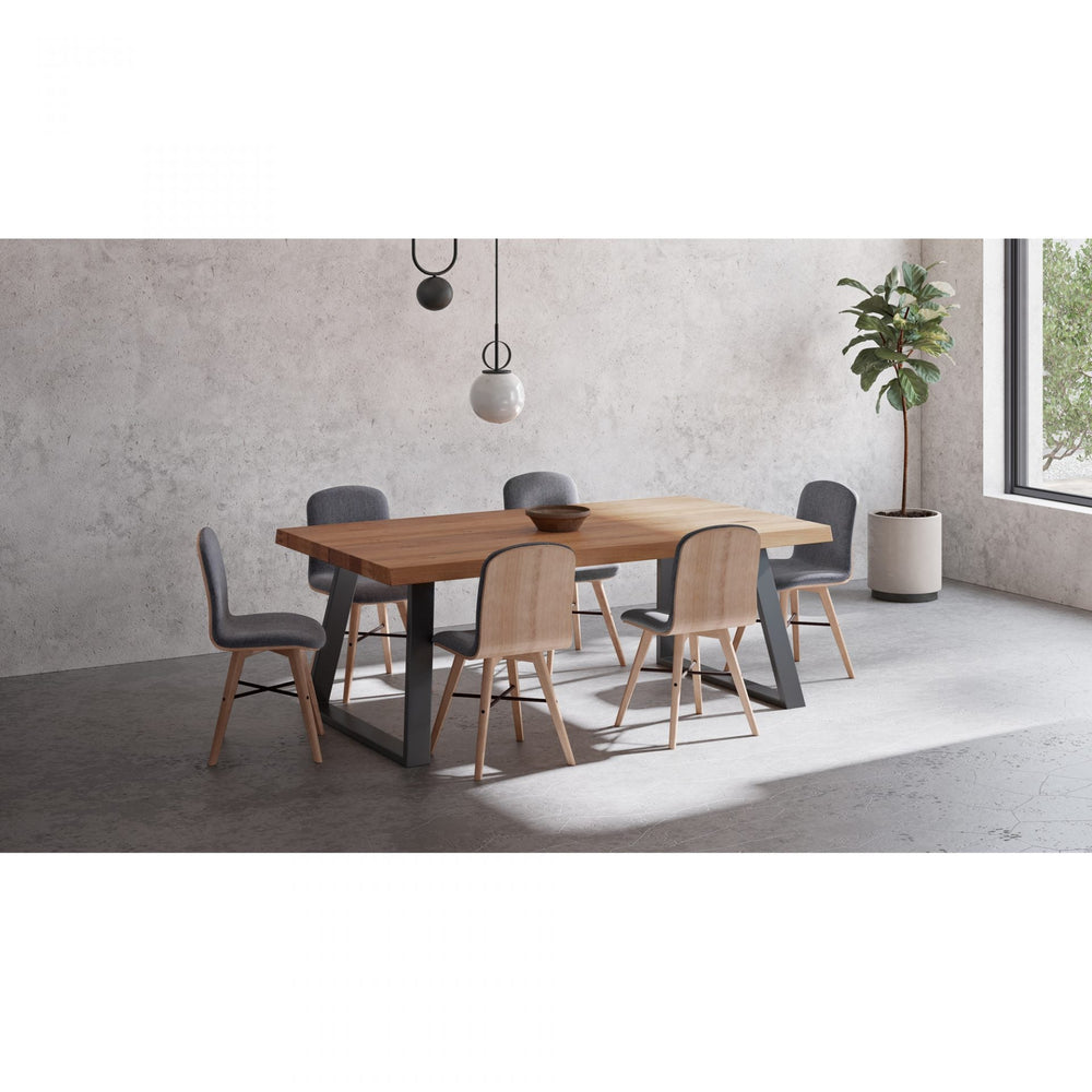 The Mila dining table molds the beauty of nature with contemporary design. A live edge tabletop made from a spacious slab of solid oak provides a unique organic element to the dining room. With knots, whorls and woodgrains particular to each piece, every Mila has its own individual charm. Bold metal legs offer industrial elevation, a cool contrast to the all-natural tabletop. Generously seating up to 6 guests, Mila offers plenty of space, whether you’re reading your morning paper or relaxing over dinner.