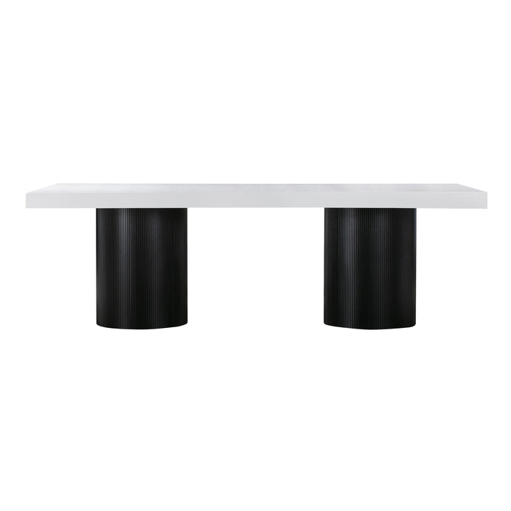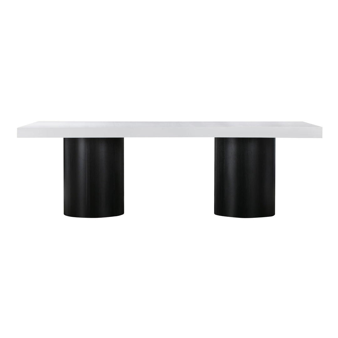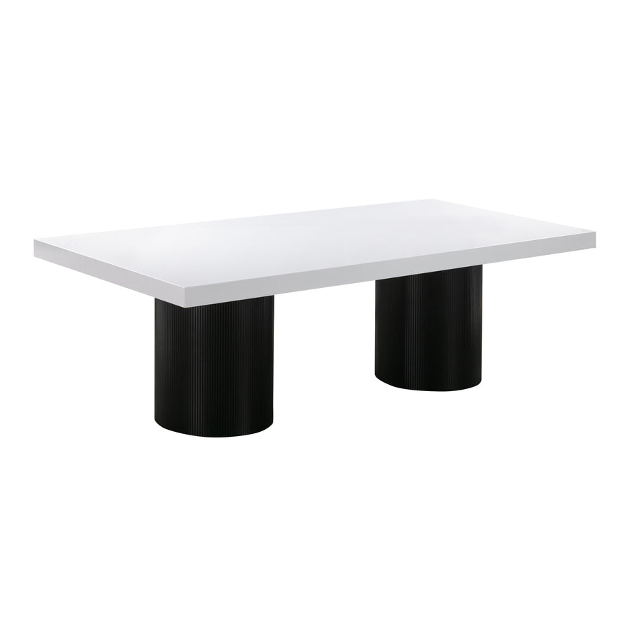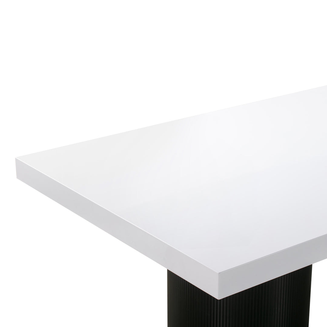The clean-cut simplicity of the Nova Table with its statement conical legs, makes it the perfect bold yet versatile piece to elevate your dining experience. Featuring a glossy white lacquer top contrasted with 2 beautifully crafted black pedestal legs, this two-toned minimalistic table will undeniably be an accessory to any dining room.