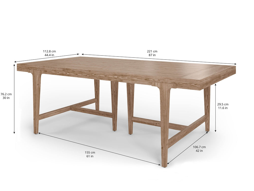 Bon Appetit! Whether you use your dining table for weekly game nights or gourmet dinners, this rectangular light oak dining table will have your family feeling right at home - and your guests feeling like they?ve just stepped into a magazine. This table has one 20-in leaf that extends to 107-in, and comfortably accommodates 6 to 10 chairs.
