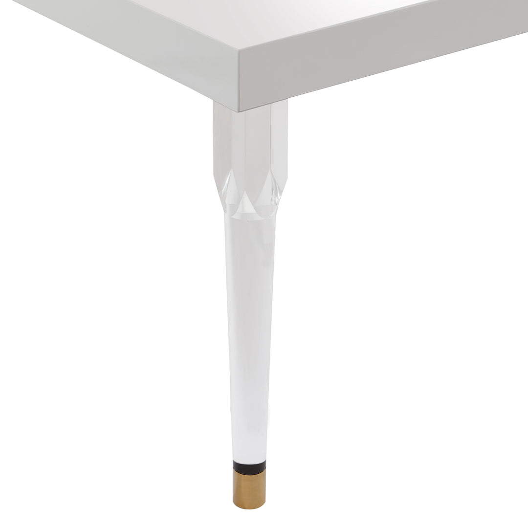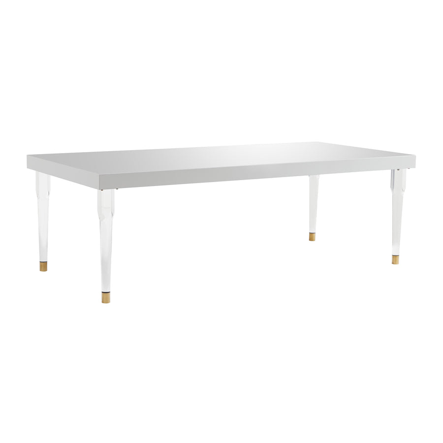Inspired by our love for Hollywood glam decor the Spindle Tabby table is the statement piece you've been looking for. Its glossy white lacquer top complemented by its four transparent acrylic legs, combine perfectly to add a transitional flair to your dining space.