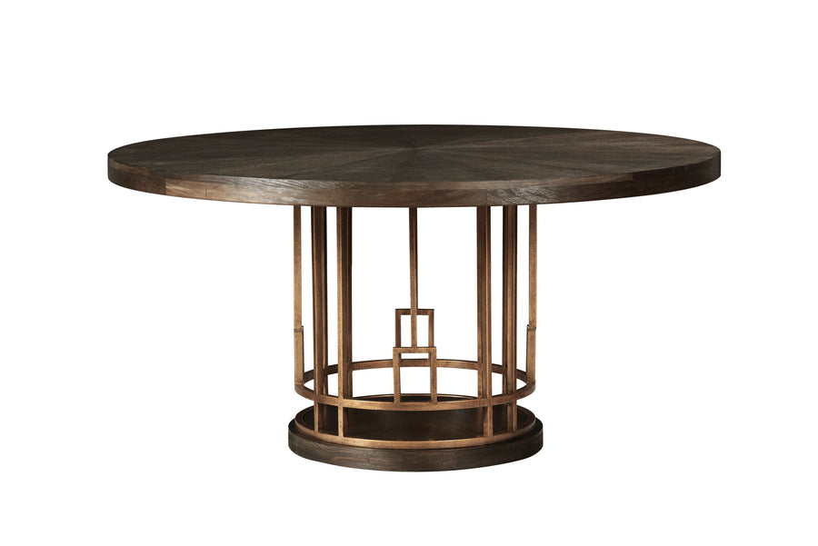 Effortlessly capturing the visionary design style from the early 20th century architects that continue to captivate consumers today, the top of the Meyer Dining Table features an intricate fancy-face veneer in a choice of two finishes: Lloyd Brown, a mid-tone brown on quarter sawn white oak or Champagne, a lighter finish with grey undertones on quarter sawn primavera veneers. Designed to comfortably seat six, it is supported by a striking bronze-tone metal fretwork base in Cherner Bronze, which showcases well against both the light and darker finish.