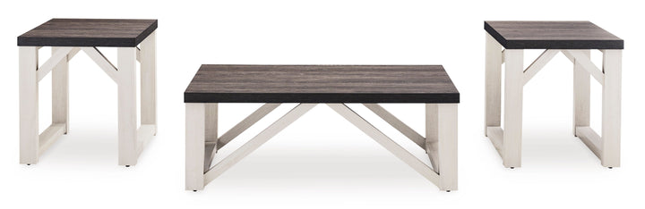 Includes coffee table and 2 end tables;Made of decorative laminate and MDF substrate;Replicated gray wood top;Antiqued white base;Assembly required