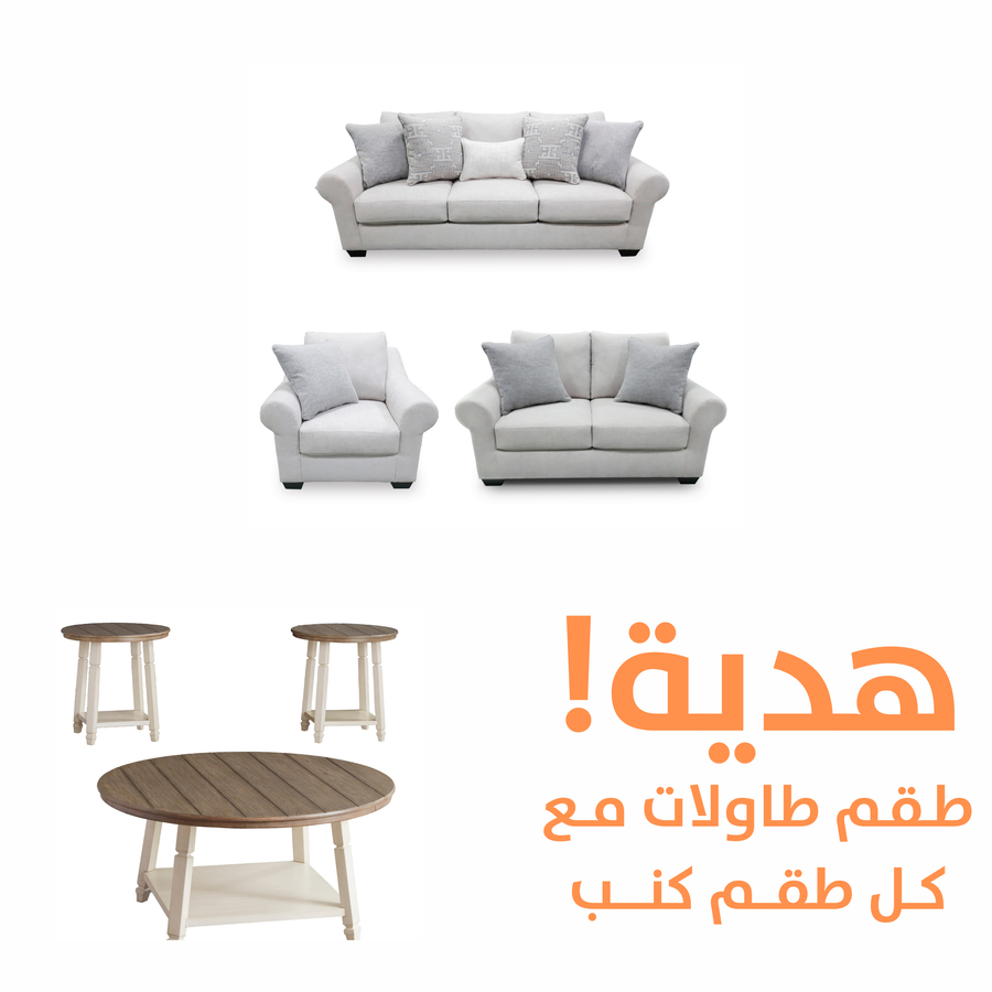 Includes round coffee table and 2 round end tables;Made of white oak veneers, wood and engineered wood;Two-tone finish in textured antique white on the legs and lower shelves and textural weathered oak color on table tops;Tabletops with planked look;Canted legs with open lower shelves;Assembly required