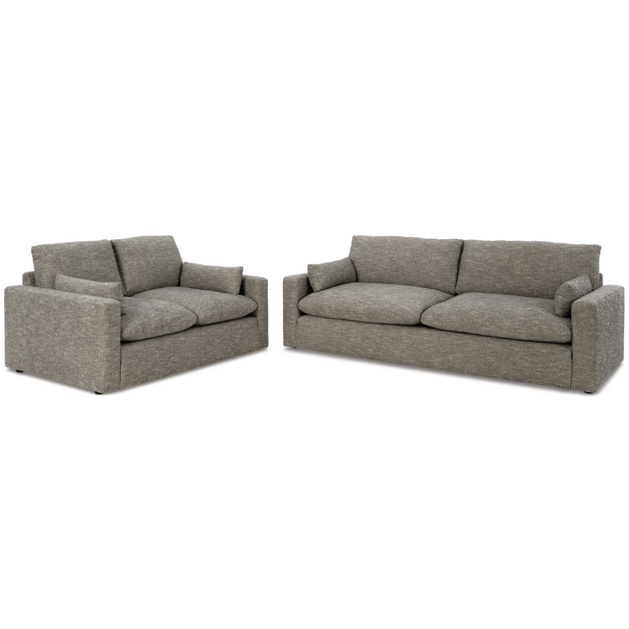 On the days when rest and relaxation seem out of reach, the Dramatic loveseat provides a positively plush seating experience. Its feather-fiber blend cushions invite you to float away in cloud-like comfort. Striking granite-hued upholstery and a streamlined frame grant this cozy piece a look well-suited to contemporary spaces.