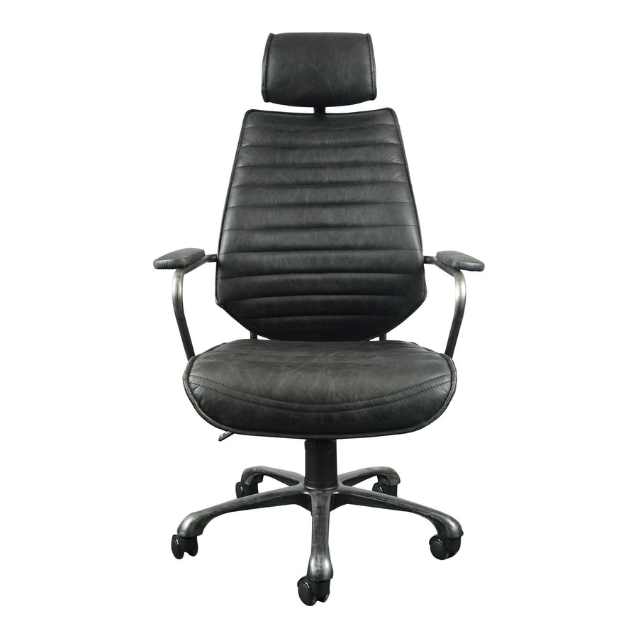 Upgrading your home office? Workspace is workflow and enhancing your daily productivity should start with comfort - without compromising style. The Executive is a high-performance task chair that encourages natural movements with curves, contours, padded armrests, and fully adjustable features. Luxuriously channeled top-grain leather leads to a sturdy iron base equipped with easy-glide wheels. Flexible design for any office decor and available in three colors, this may just be the last office chair you'll ever have to buy.