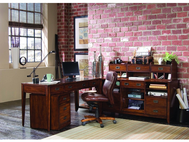 Danforth's styling is inspired by British campaign sea chests from the colonial era. A rich medium brown finish is rendered on birch solids and cherry veneers. Recessed campaign hardware is used on drawers and doors.