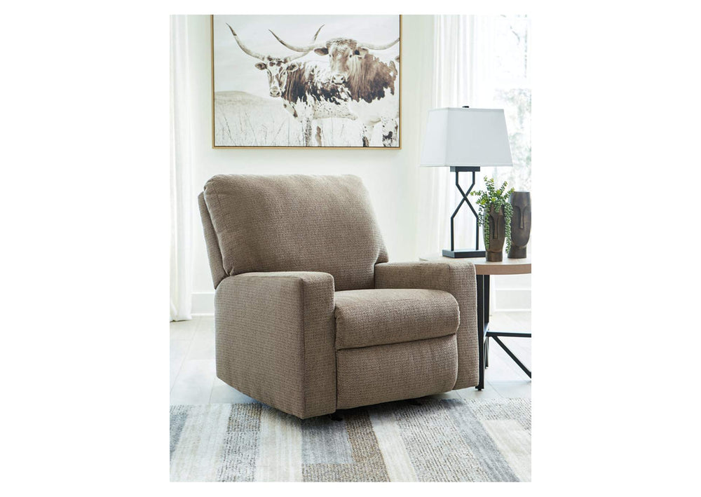 What happens when contemporary design meets plush comfort? Introducing the striking Bristaview rocker Recliners. Supple woven upholstery, simple pull tab reclining and a soothing, gentle rocking motion deliver relaxation and convenience with a chic modern vibe. All that’s missing is you.