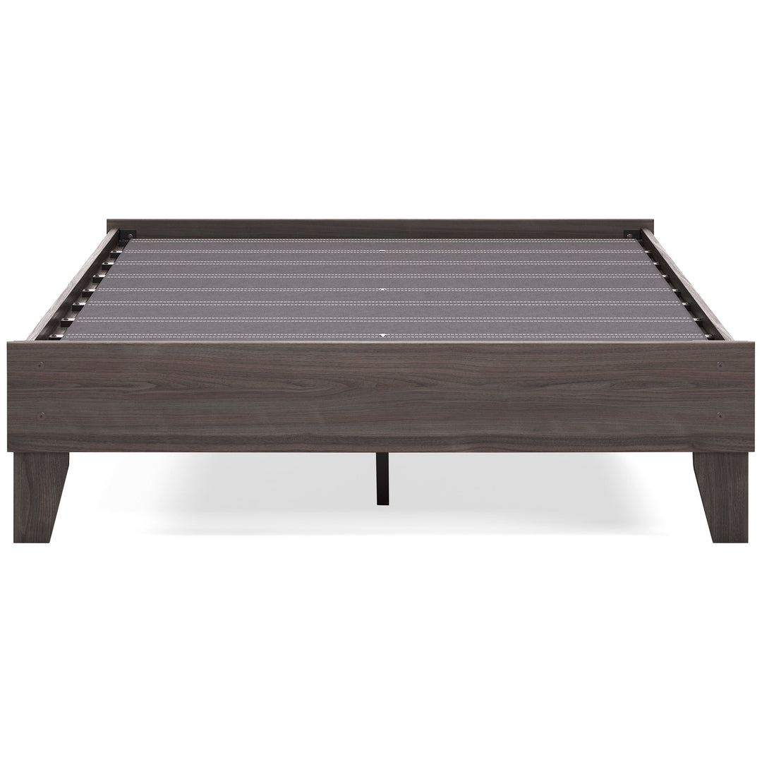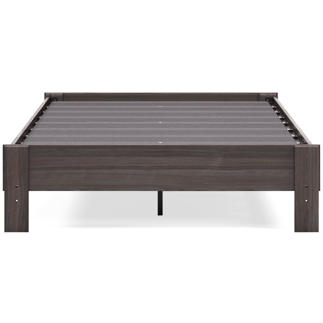 With clean lines evoking a mid-century modern mood, the Brymont full platform bed is designed to bring harmony to your bedroom retreat. Finished in a warm gray that enhances the soothing sensibility.