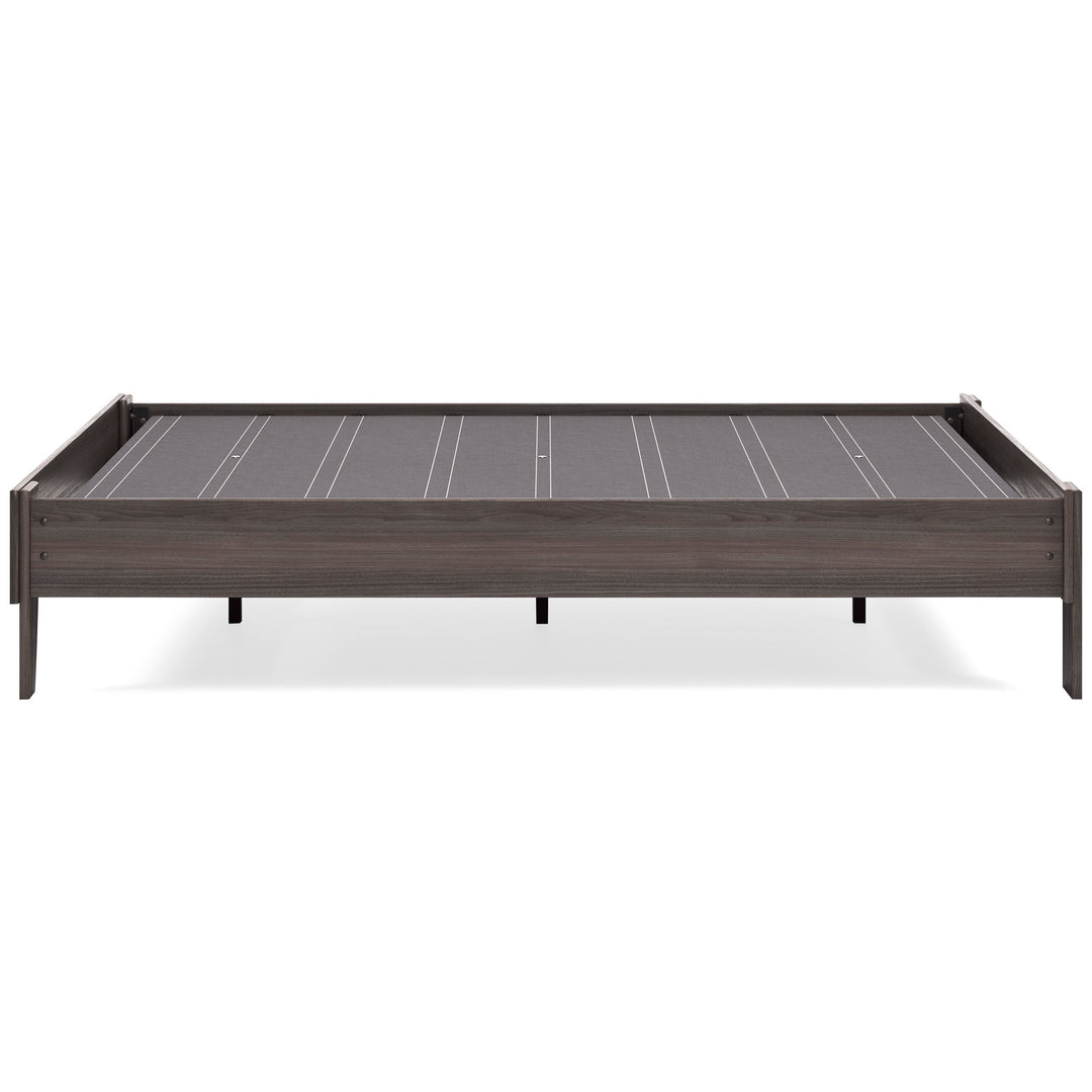 Full platform bed (does not include headboard);Made with engineered wood (MDF/particleboard/plywood) and decorative laminate for the right balance of affordability and durability;Warm gray finish over replicated walnut wood grain with authentic touch;Bed does not require a foundation/box spring;Mattress available, sold separately;Assembly required;Bed is not compatible with an adjustable base