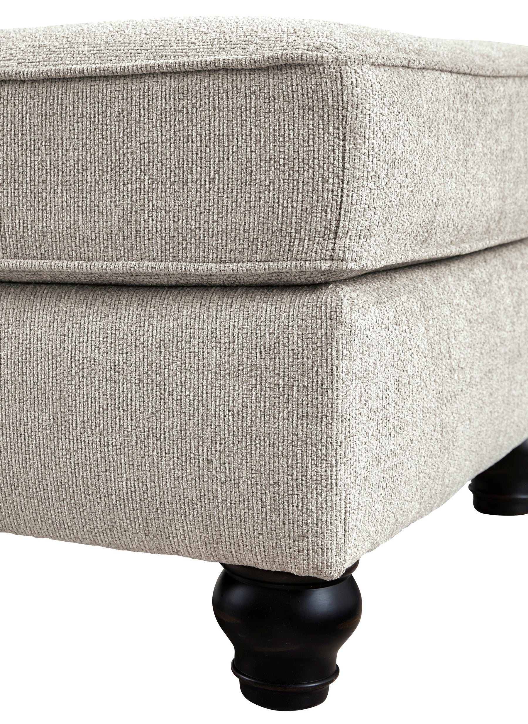 If you’re one to embrace new traditions, behold the beauty of the Benbrook ottoman. Giving stately elegance a sense of newfound flair, it's dressed to impress with a distressed black exposed rail that complements today’s more relaxed lifestyles. Tailored elements like a light and lovely linen-weave upholstery and turned bun feet make this updated classic complete.