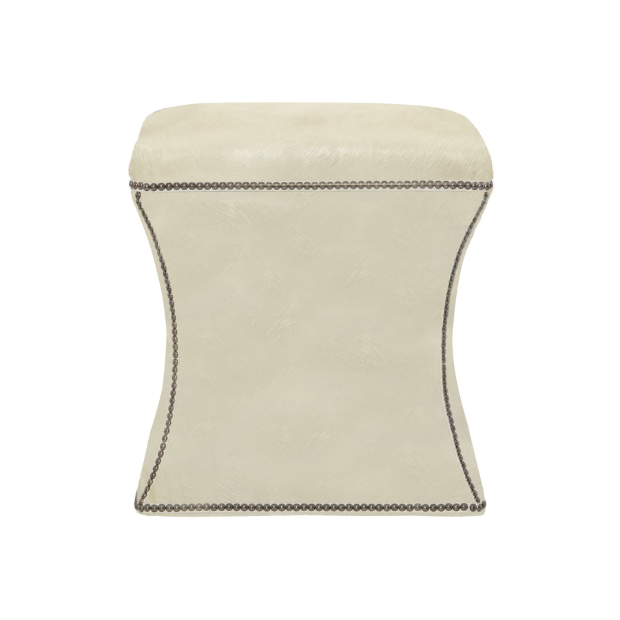 Fine craftsmanship, unique materials, and modern styling characterize the eclectic Bernhardt Interiors collection. With a compact size and an elegant design, the Roscoe leather ottoman is the perfect accent for the luxe interior. The sides curve gently inward to form an hourglass shape, accentuated by refined nailhead trim. From a variety of fine leathers and finishes, this piece may be customized to suit any room.