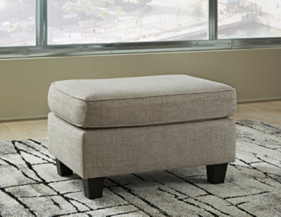 Corner-blocked frame;Firmly cushioned;High-resiliency foam cushion wrapped in thick poly fiber;Polyester upholstery;Exposed feet with faux wood finish,Ottoman