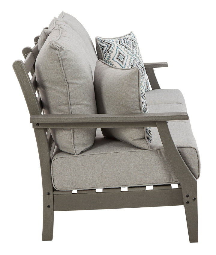 It’s the dawn of a new day for gray. Embrace the style trend with the Visola outdoor sofa. Crafted of HDPE material that combines the exceptional durability and weather resistance you need with the “wood look” you love, this comfortably cushioned sofa takes outdoor living to a whole new level. Rest assured, the thick seat and back cushions and throw pillows are wrapped in our exclusive Nuvella® high-performance fabric that’s fade resistant, stain resistant and a breeze to clean.