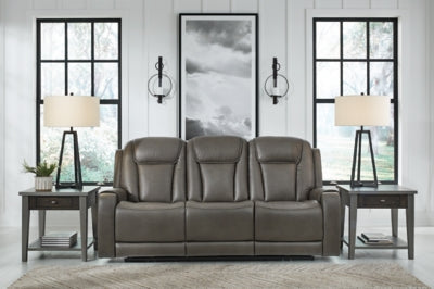 One-touch power control with adjustable positions, Easy View™ adjustable headrest, massage function, heated seats and zero-draw USB port;Air massage system includes 3 settings: steady, pulse and wave (with automatic 20-minute shutoff feature);Heat in the seat element (with automatic 30-minute shutoff feature);Zero-draw technology only consumes power when the USB receptacle is in use;Zero-gravity mechanism (raises the ottoman to improve circulation);Extended ottoman for enhanced comfort;Corner-blocked frame with metal reinforced seats;Attached cushions;High-resiliency foam cushions wrapped in thick poly fiber;Faux leather upholstery;Drop-down table with 2 cup holders and magazine pouch;2-stage cup holder converts to a flat surface for coffee mugs;Power cord included; UL Listed,Power Reclining Sofa