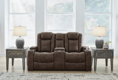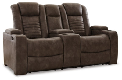 One-touch power control with adjustable positions, Easy View™ adjustable headrest and zero-draw USB port;Zero-draw technology only consumes power when the USB receptacle is in use;Corner-blocked frame with metal reinforced seat;Attached cushions;High-resiliency foam cushions wrapped in thick poly fiber;Faux leather upholstery;Armrests with flip-top storage and cup holder;Center console with 2 cup holders and hidden storage;Power cord included; UL Listed,Power Reclining Loveseat with Console