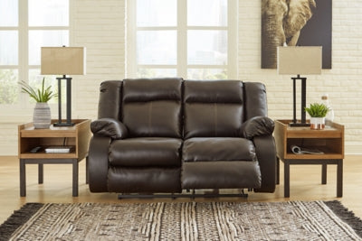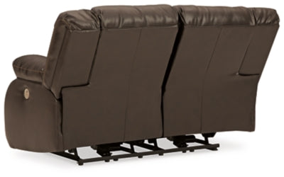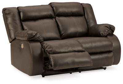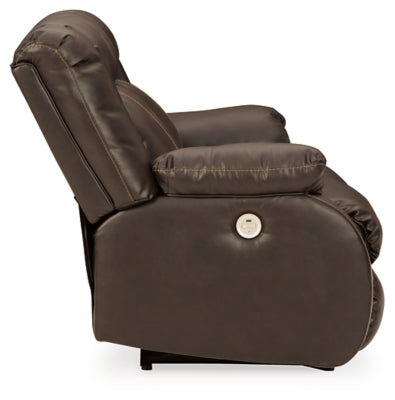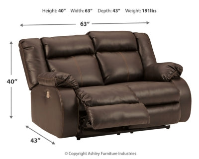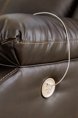 Dual-sided recliner;One-touch power control with adjustable positions and zero-draw USB plug-in;Zero-draw technology only consumes power when the USB receptacle is in use;Faux leather upholstery;Corner-blocked frame with metal reinforced seat;Attached back and seat cushions;Exaggerated headrest;High-resiliency foam cushions wrapped in thick poly fiber;Power cord included; UL Listed,Power Reclining Loveseat