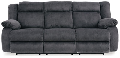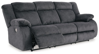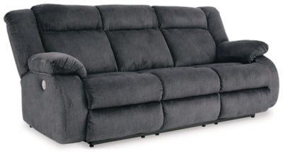 Dual-sided recliner; middle seat remains stationary;One-touch power control with adjustable positions and zero-draw USB plug-in;Zero-draw technology only consumes power when the USB receptacle is in use;Velvet polyester upholstery;Corner-blocked frame with metal reinforced seat;Attached back and seat cushions;Exaggerated headrest;High-resiliency foam cushions wrapped in thick poly fiber;Power cord included; UL Listed,Power Reclining Sofa