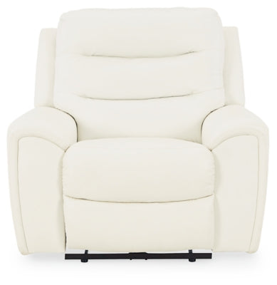 With its decidedly contemporary styling, the Warlin power recliner has a sleek sensibility that seamlessly elevates your living room aesthetic. Explore endless possibilities for comfort with its one-touch power control, zero-gravity reclining and adjustable headrest. A triple-tier back and chic white upholstery round out this simply stunning piece.