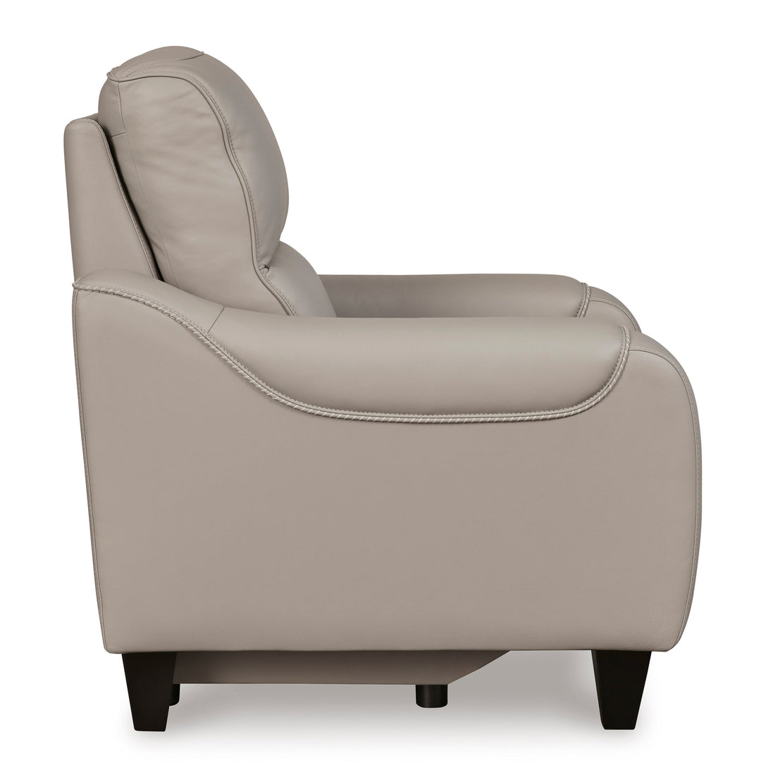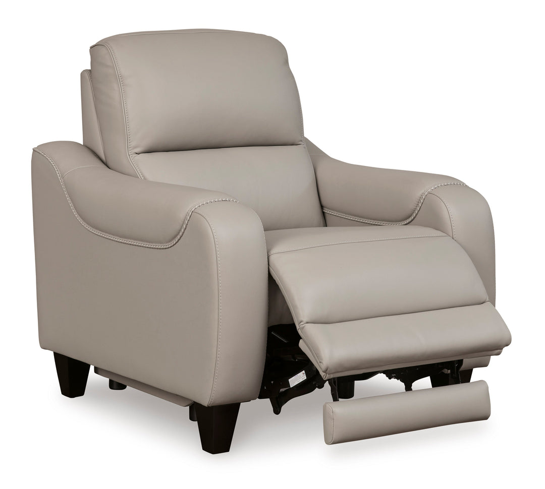 One-touch power control with adjustable positions, Easy View™ adjustable headrest, USB-C fast charging and zero-draw USB port;Zero-draw technology only consumes power when the USB receptacle is in use;Zero-gravity mechanism allows optimum reclining comfort with infinite reclining positions at the touch of a button;Corner-blocked frame with metal reinforced seat;Attached cushions;High-resiliency foam cushions wrapped in thick poly fiber;Genuine leather typically covers inside areas such as the back, seat and arm cushions; skillfully matched faux leather covers the remaining areas;Due to its natural origin, real leather can show individual characteristics such as healed scars, growth marks, grain variation and shade variation;Natural variations make each hide unique and do not detract from the wearing qualities of leather;Zero wall Recliners design requires minimal space between wall and chair back;Exposed feet with faux wood finish;Power cord included; UL Listed,Power Recliners