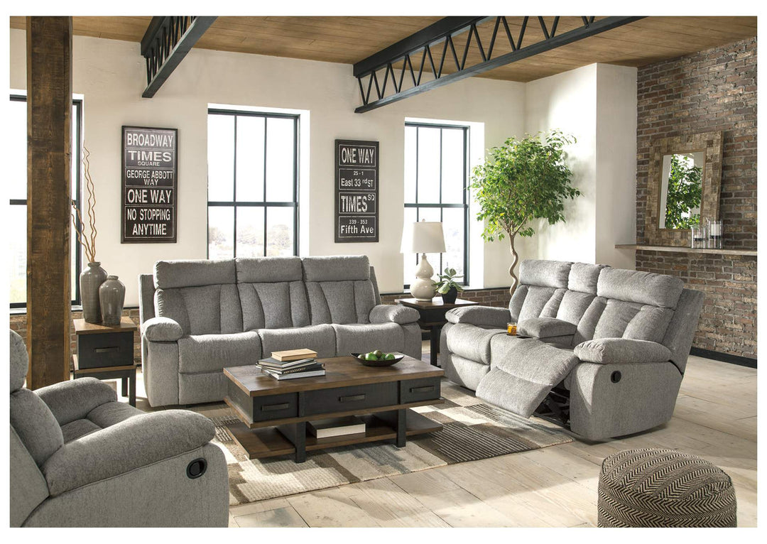 Bring your snacks and beverages and plan for a night with your feet up. This double reclining loveseat is plush in all the right places, and will support you longer than you can binge watch your favorite TV show. The neutral upholstery is ready for a patterned throw blanket and some of your time. Hide the remote in the console and claim your spot on the Mitchiner.
