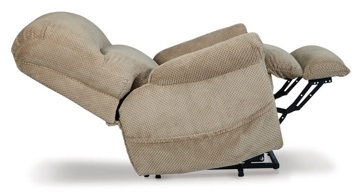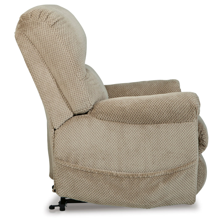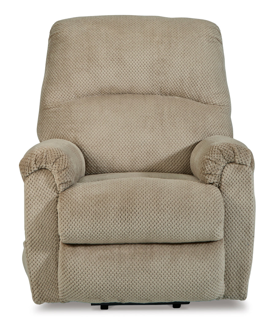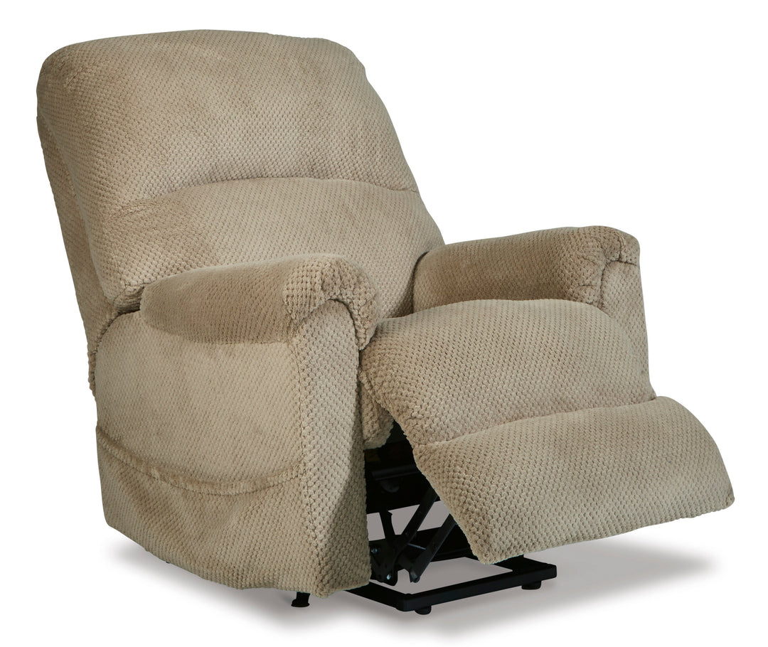 One-touch (hand control) power button with adjustable positions;Zero-draw USB charging port;Zero-draw technology only consumes power when the USB receptacle is in use;Corner-blocked frame with metal reinforced seat;Attached back and seat cushions;High-resiliency foam cushions wrapped in thick poly fiber;Single-motor lift;Lays flat when fully reclined for extended comfort;Gentle lift and tilt motion;Polyester upholstery;Power cord included; UL Listed,Power Lift Recliners