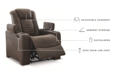 One-touch power control with adjustable positions, Easy View™ adjustable headrest and zero-draw USB port;Zero-draw technology only consumes power when the USB receptacle is in use;Corner-blocked frame with metal reinforced seat;Attached cushions;High-resiliency foam cushions wrapped in thick poly fiber;Faux leather upholstery;Armrests with flip-top storage and cup holder;Power cord included; UL Listed,Power Recliner