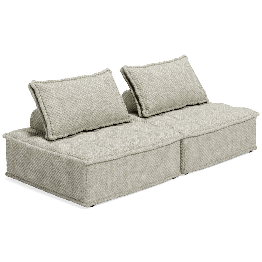 Includes 2 modular accent chairs;Polyester upholstery;Pillow and bolster with non-slip decking;Seat cushion with non-slip feet;Assembly required