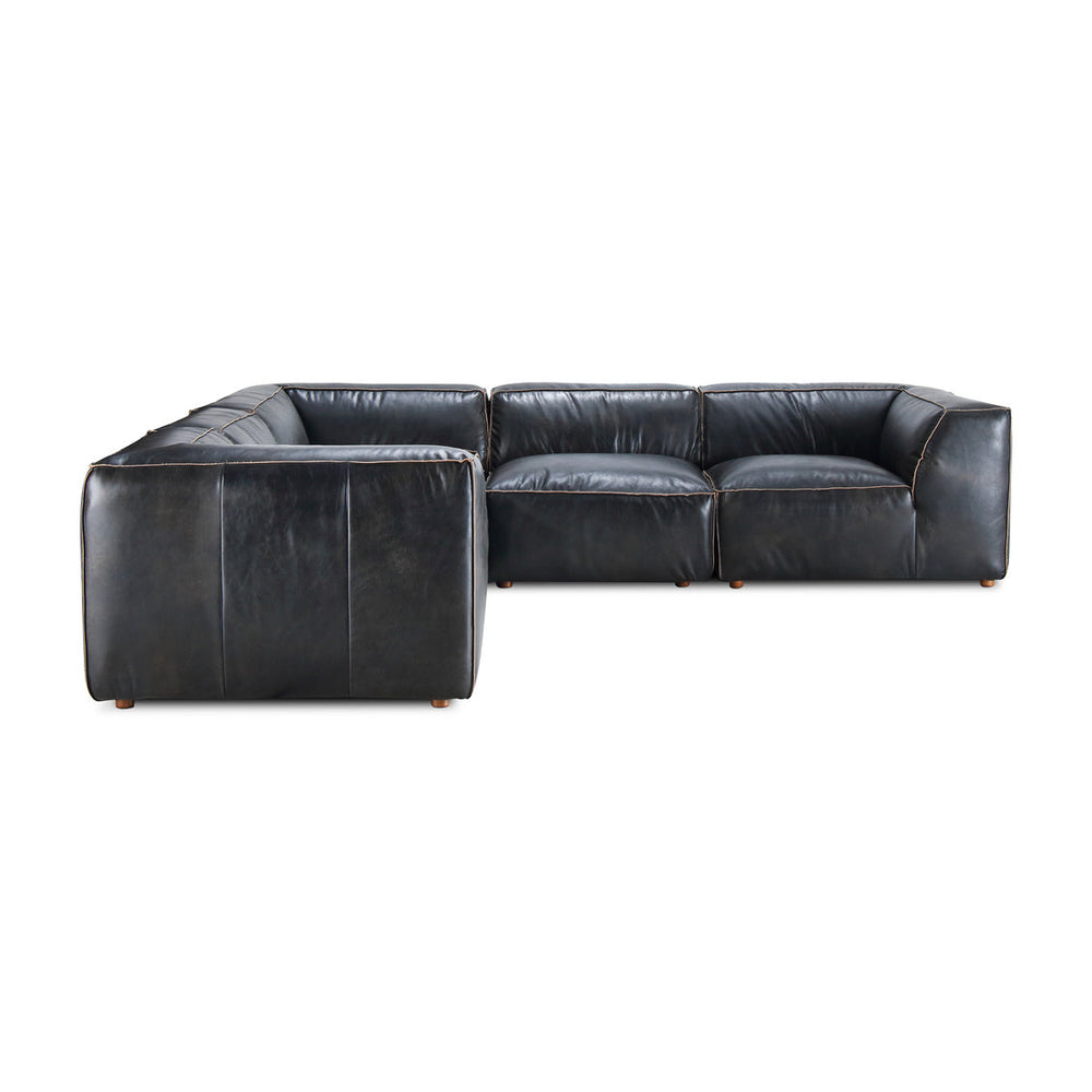 The Luxe collection features ever-so-soft, 100% top-grain buffalo leather upholstery that will age into a beautiful patina with reverse stitching accents to add an artisanal touch. With an emphasis on its plump, slightly rounded silhouette, this modular sofa’s feather and fiber-filled cushions are an oasis of ultra-soft luxury. Available in black and tan, Luxe is a collage of comfort that includes slipper and corner chairs, as well as an ottoman or in several classic configurations: Lounge, Nook, Signature, Classic L and Dream.
