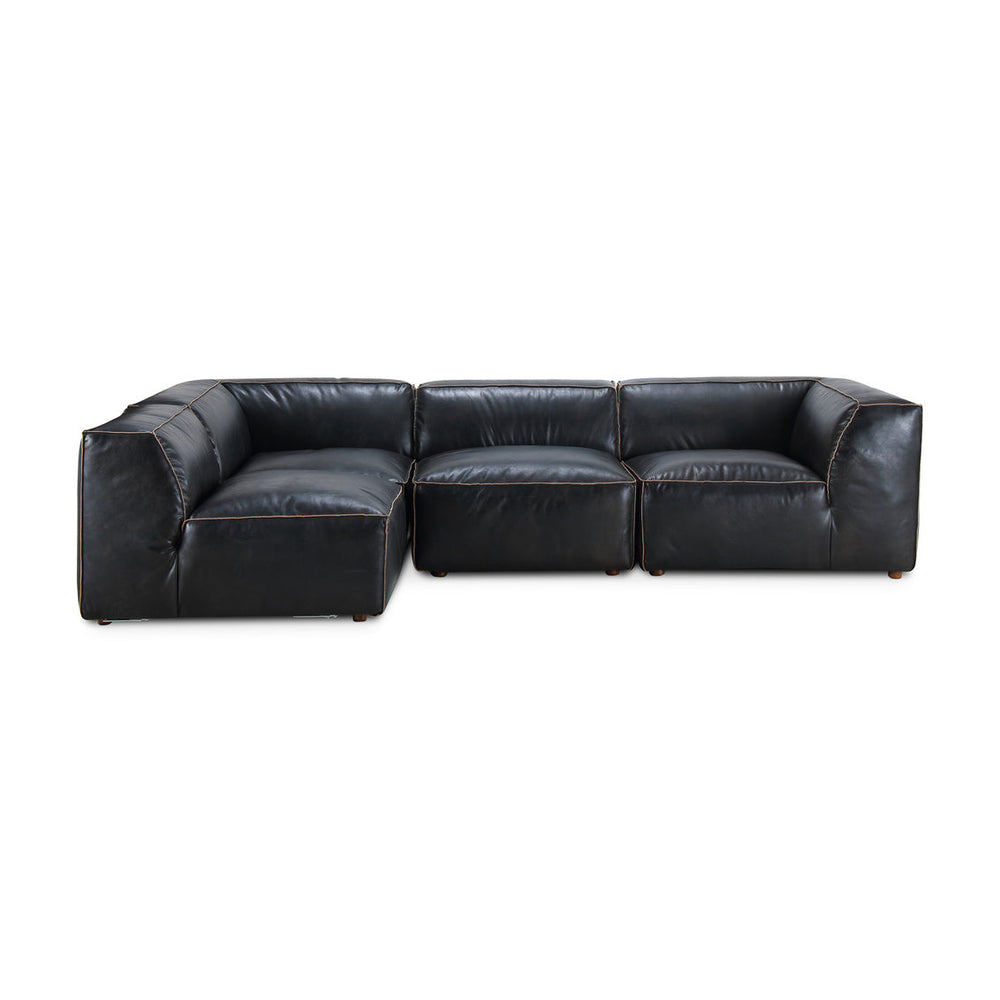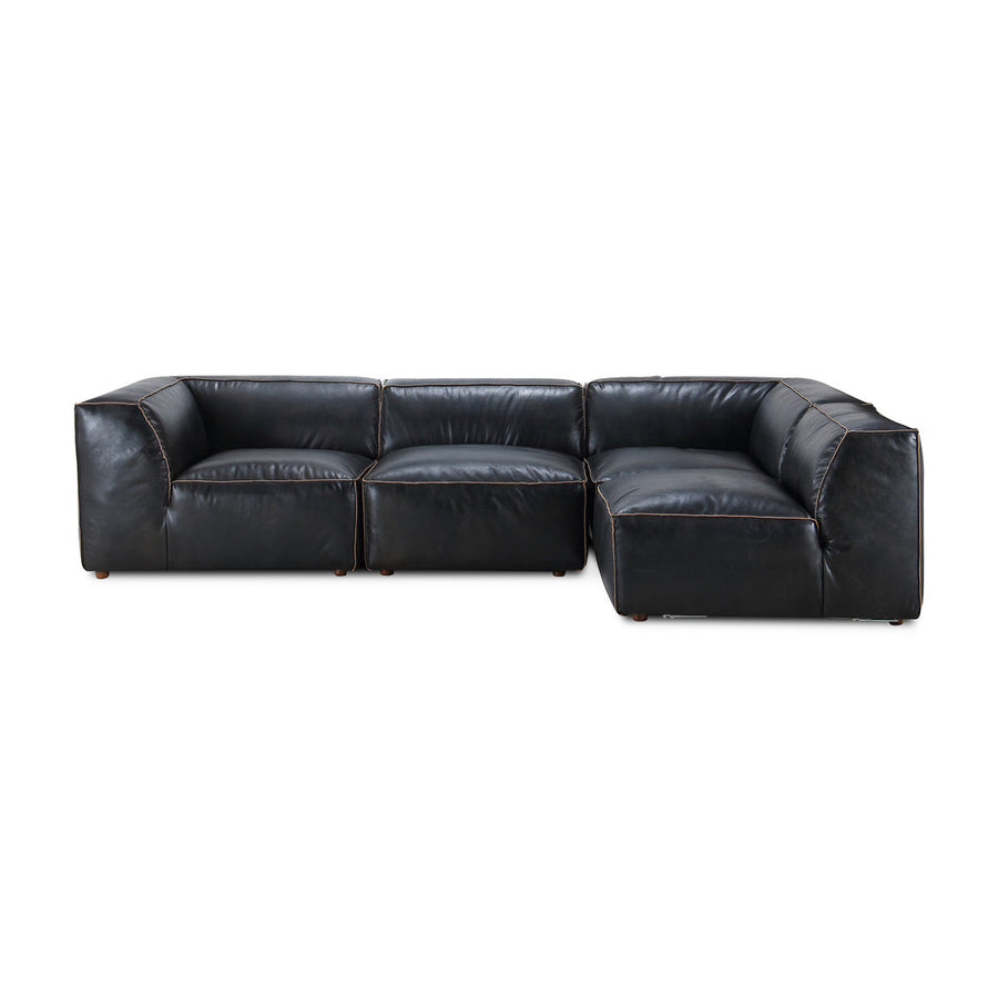 The Luxe collection features ever-so-soft, 100% top-grain buffalo leather upholstery that will age into a beautiful patina with reverse stitching accents to add an artisanal touch. With an emphasis on its plump, slightly rounded silhouette, this modular sofa’s feather and fiber-filled cushions are an oasis of ultra-soft luxury. Available in black and tan, Luxe is a collage of comfort that includes slipper and corner chairs, as well as an ottoman or in several classic configurations: Lounge, Nook, Signature, Classic L and Dream.
