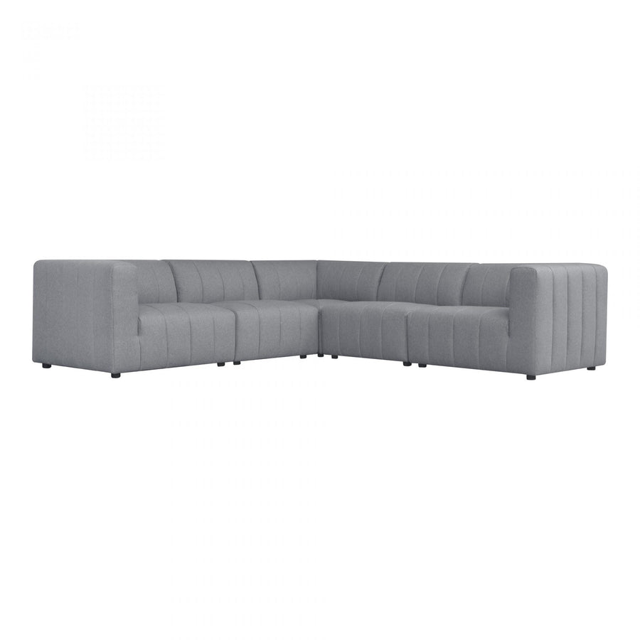 A sectional collection that finds poetry in the motion of modular design. With quiet earth tones and sculptured form, the Lyric collection offers a plump silhouette designed to be mixed and matched to harmonize your space. A modern transformation, the Lyric Classic L sectional features a deep-set, luxurious seat with stylish channel stitching that adds texture and depth. With a pine and plywood frame, this 5-piece sofa is sturdy and supportive, with a spring suspension that offers plush decadence. Its buttery soft upholstery pairs with its artistic form to create a couch that's both relaxed and unique. For modular style that will leave you in rhapsody, you're free to play around with space and seating until you get the perfect fit.