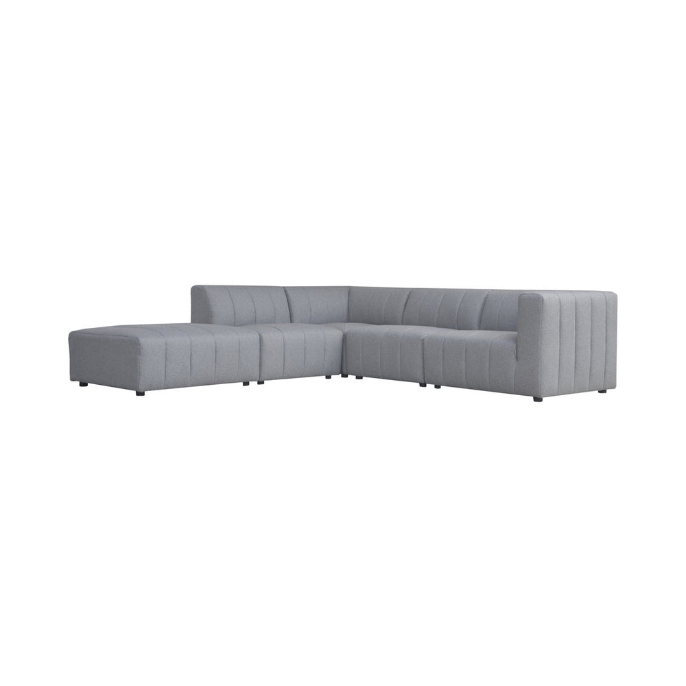 A sectional collection that finds poetry in the motion of modular design. With quiet earth tones and sculptured form, the Lyric collection offers a plump silhouette designed to be mixed and matched to harmonize your space. A modern transformation, the Lyric Dream sectional features a deep-set, luxurious seat with stylish channel stitching that adds texture and depth. With a pine and plywood frame, this 5-piece sofa is sturdy and supportive, with a spring suspension that offers plush decadence. Its buttery soft upholstery pairs with its artistic form to create a couch that's both relaxed and unique. For modular style that will leave you in rhapsody, you're free to play around with space and seating until you get the perfect fit.
