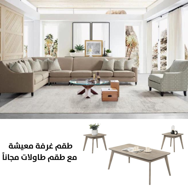 Twilight Beige Sectional SET + Megan grey wash Coffee table (set of 3 ):