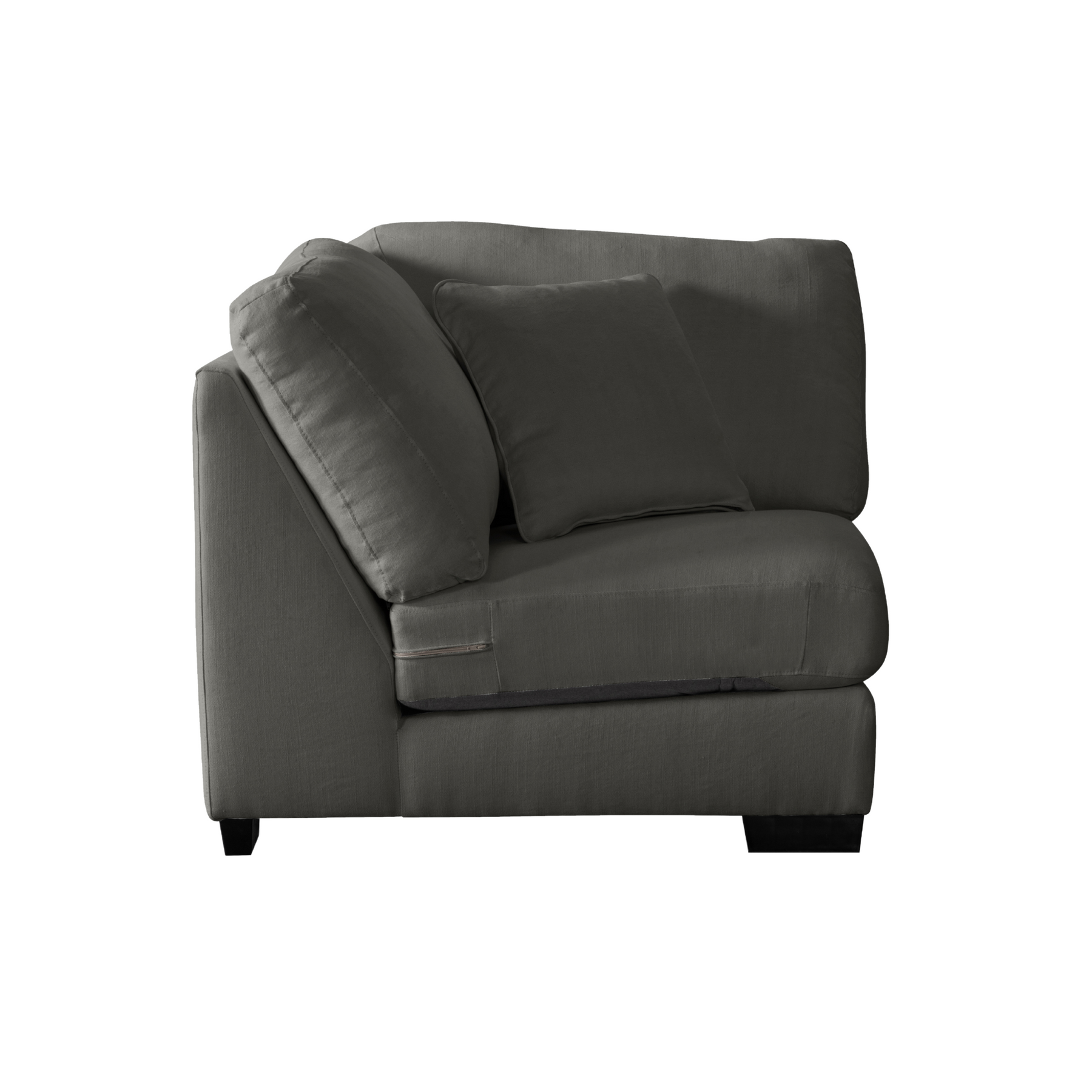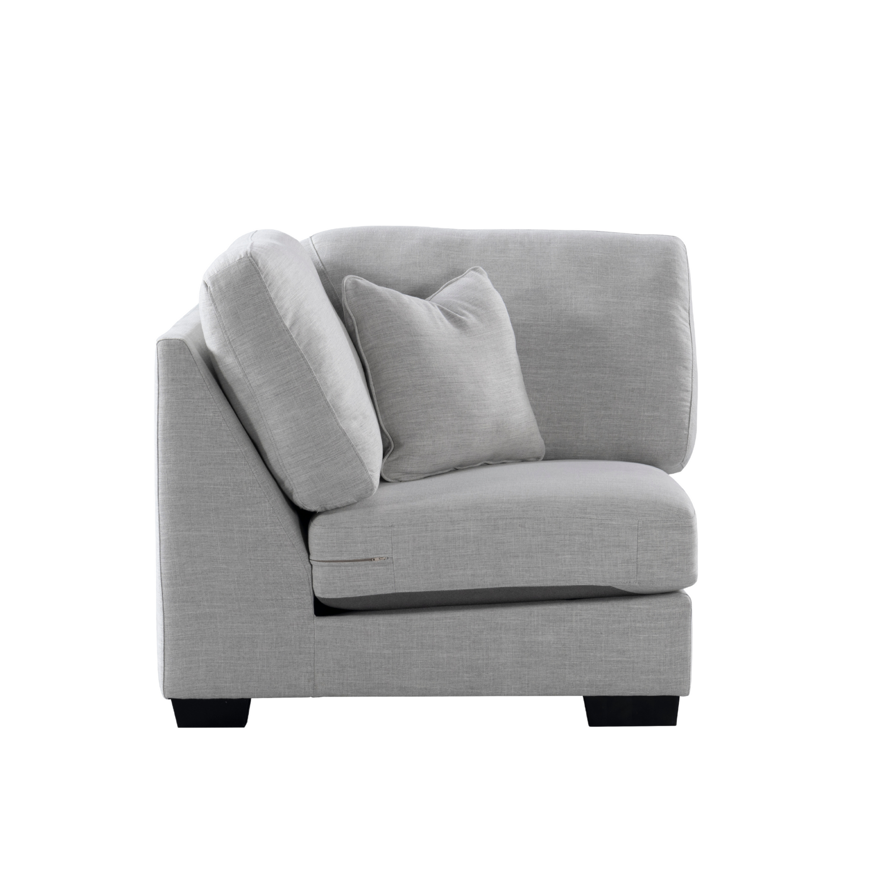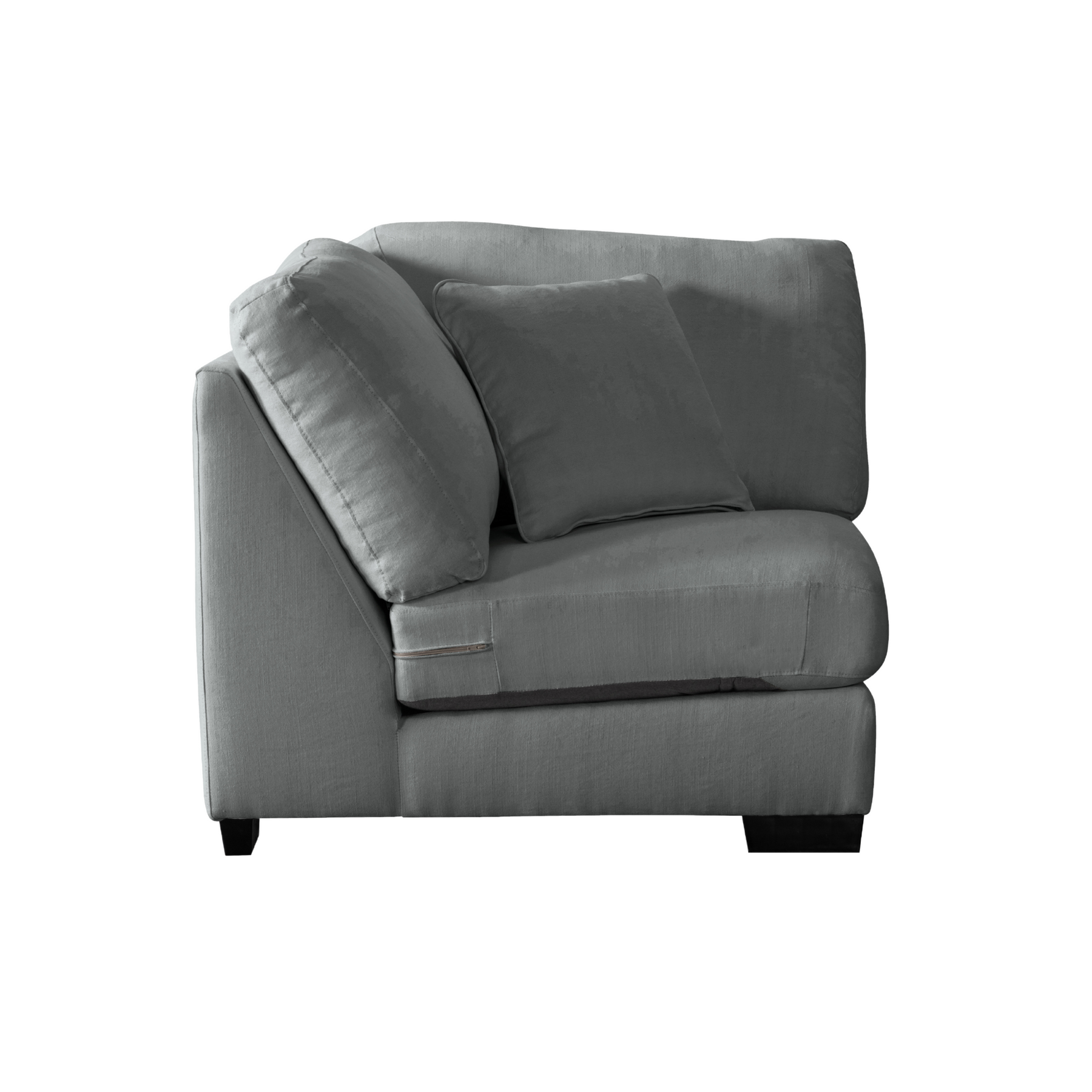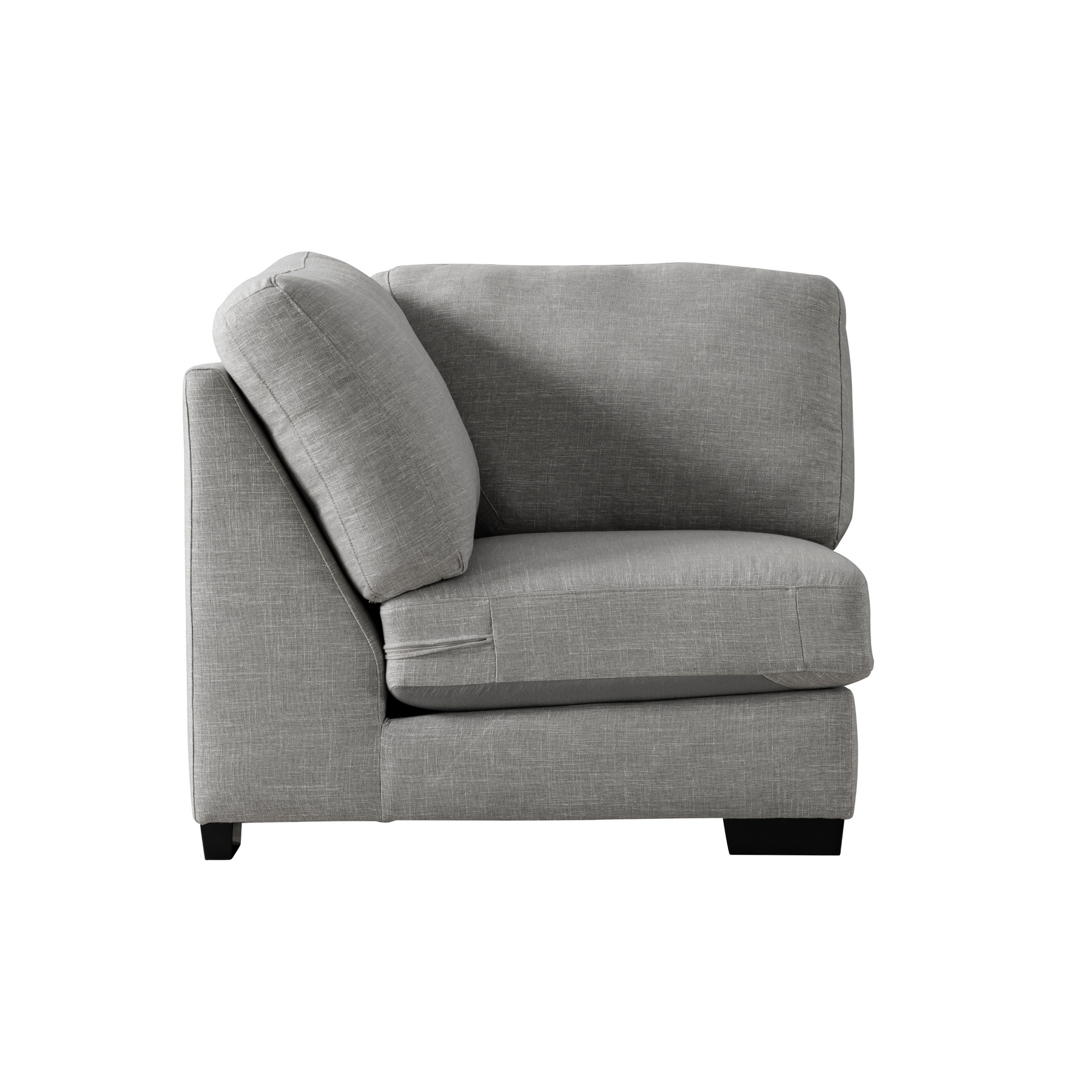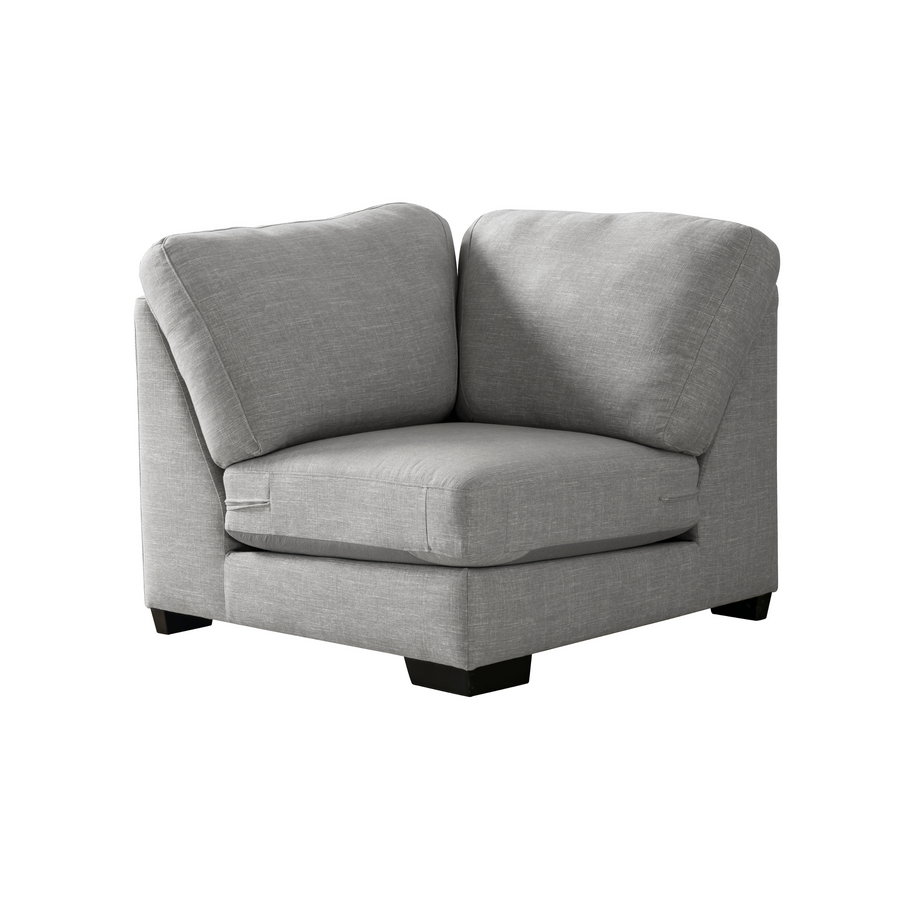 Get comfort in our trendy and spacious sectional, with its clean lines, sleek material and modern style. With plush grey fabric and charming cushions, this cozy and grand Sectional by Roots Furniture is definitely what you need in your home.