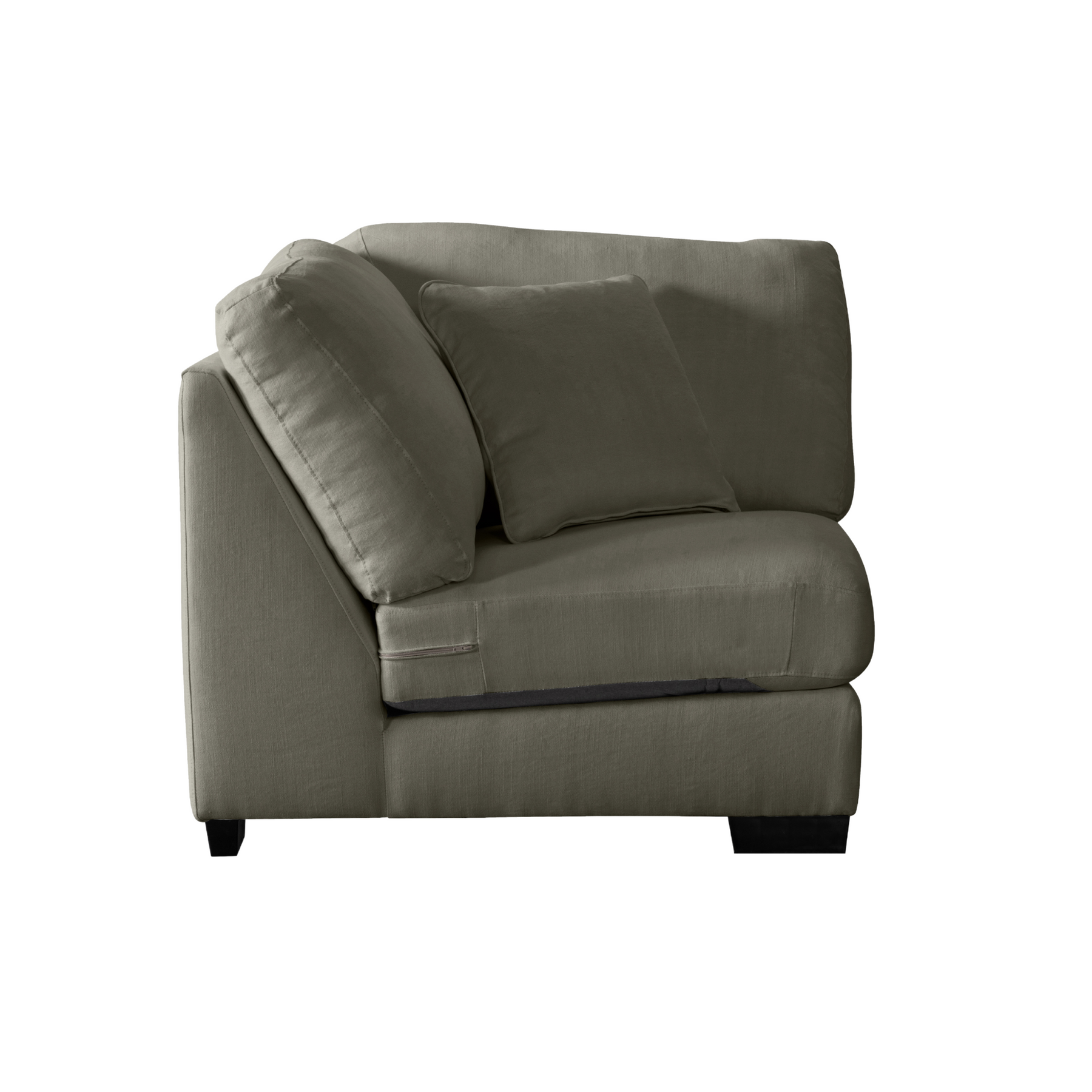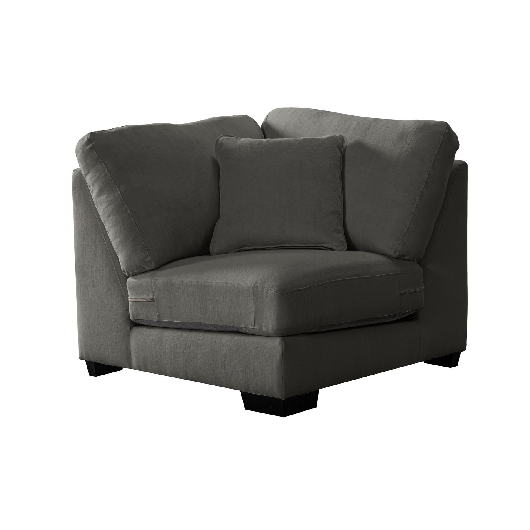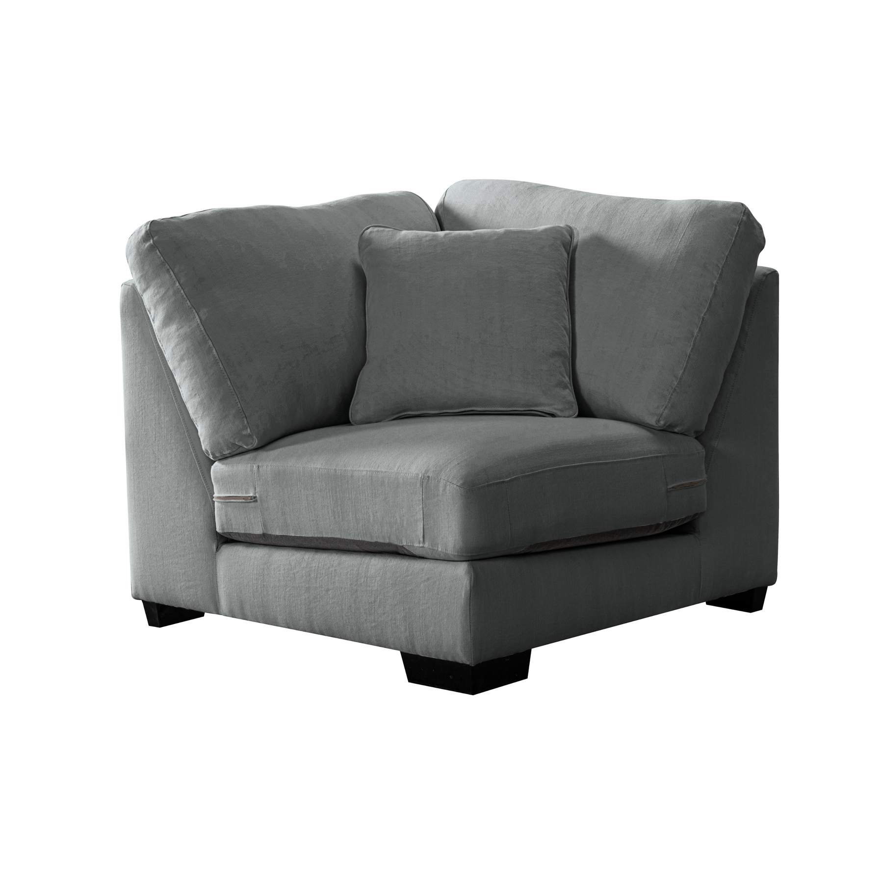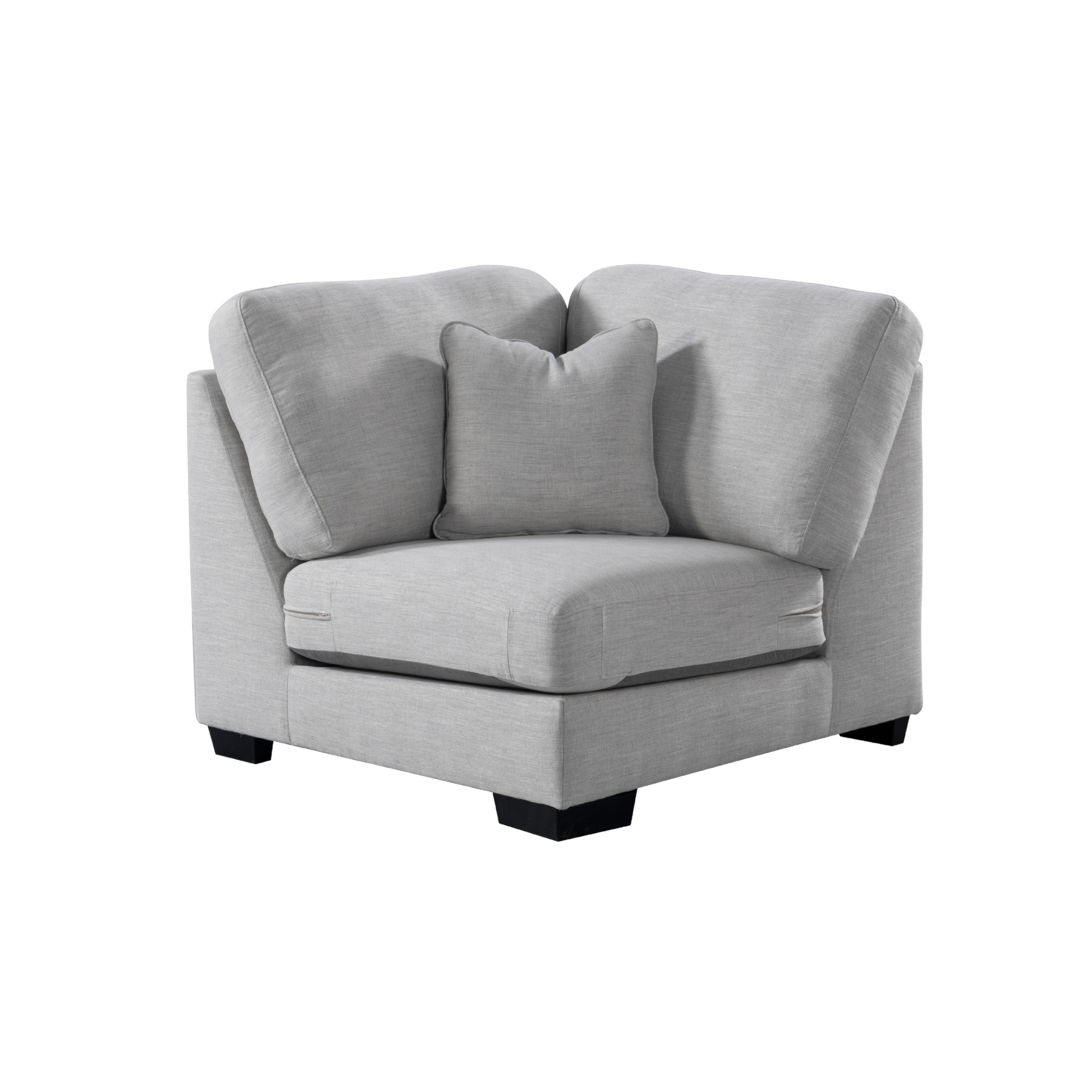 Get comfort in our trendy and spacious sectional, with its clean lines, sleek material and modern style. With plush grey fabric and charming cushions, this cozy and grand Sectional by Roots Furniture is definitely what you need in your home.