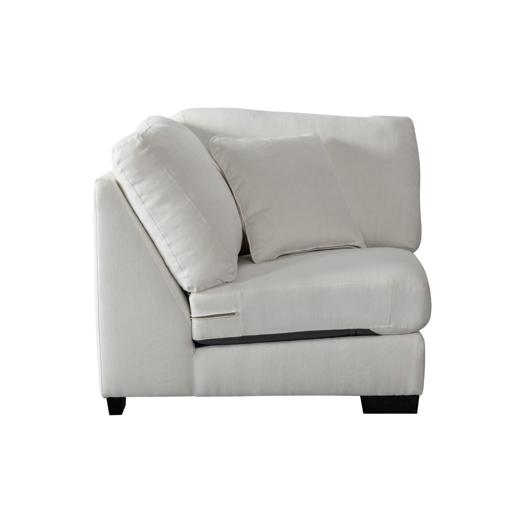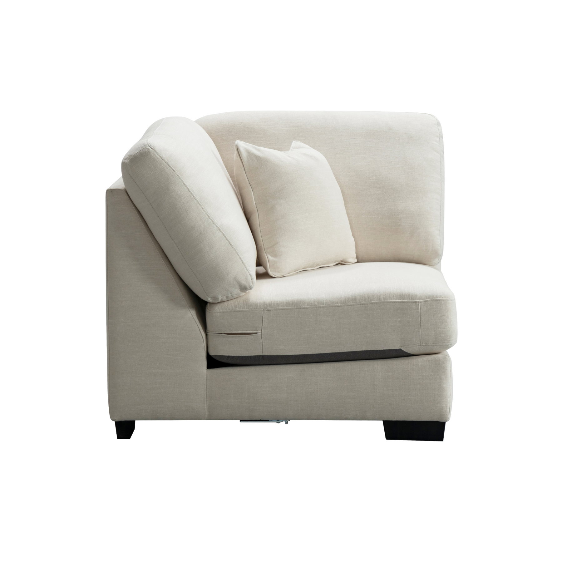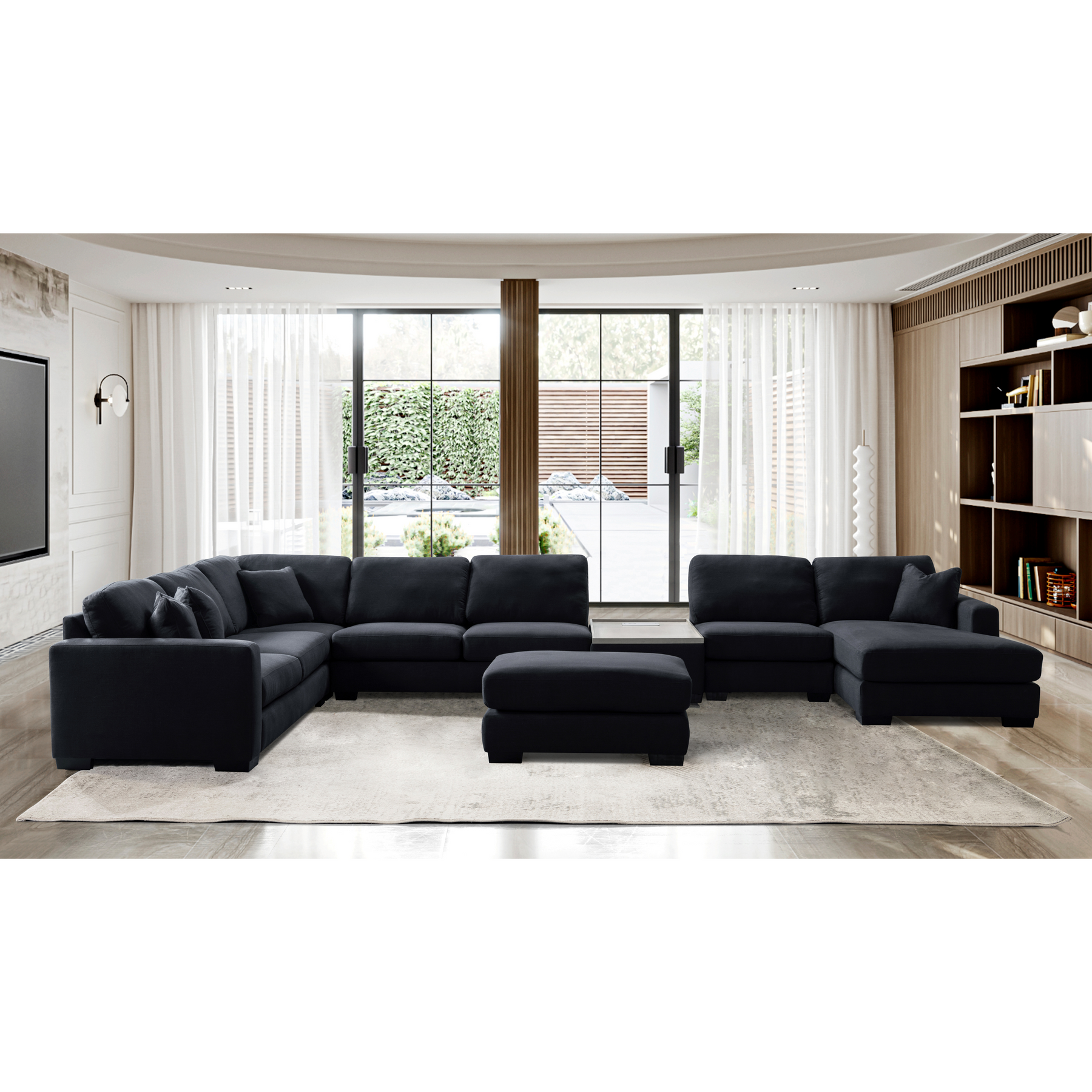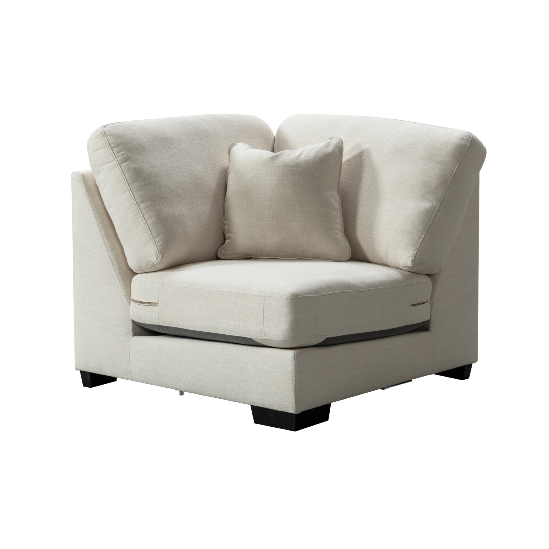 Get comfort in our trendy and spacious sectional, with its clean lines, sleek material and modern style. With plush grey fabric and charming cushions, this cozy and grand Sectional by Roots Furniture is definitely what you need in your home.