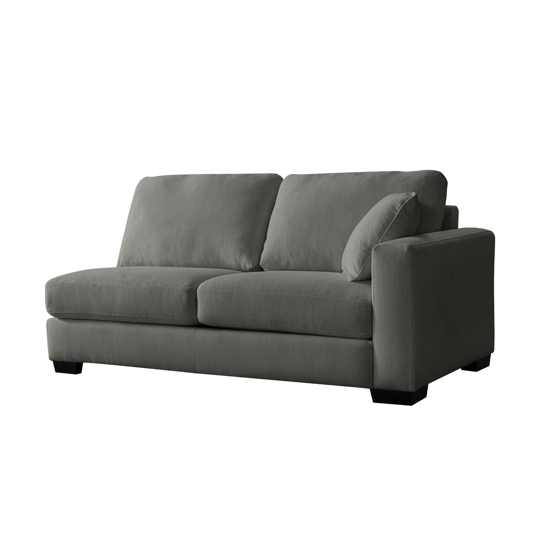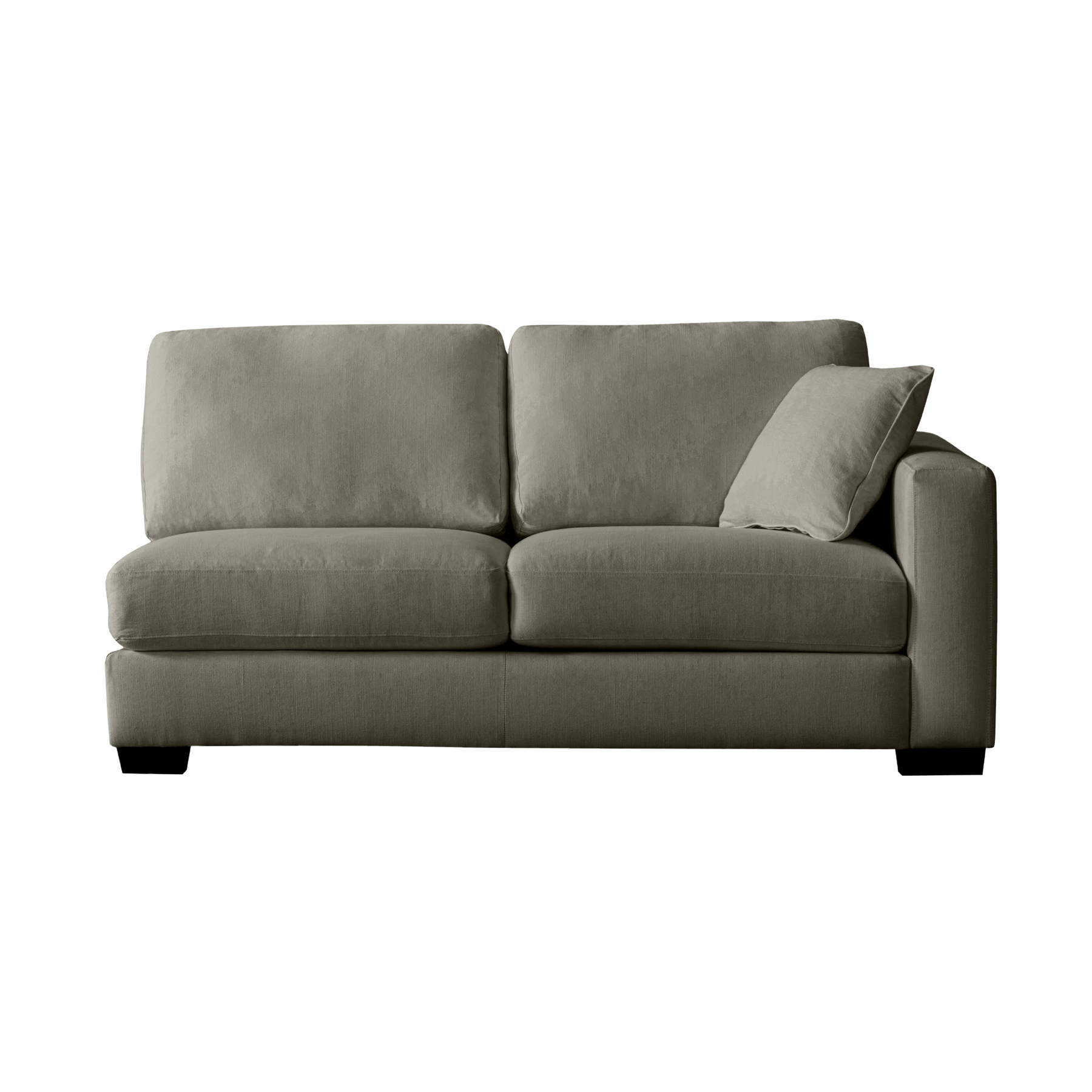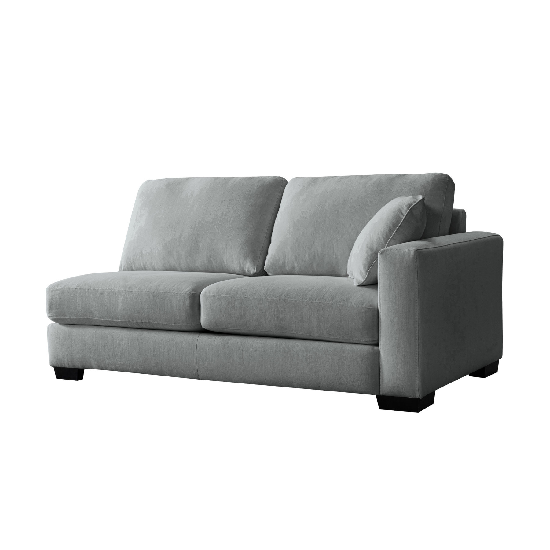 Get comfort in our trendy and spacious sectional, with its clean lines, sleek material and modern style. With plush grey fabric and charming cushions, this cozy and grand Sectional by Roots Furniture is definitely what you need in your home.