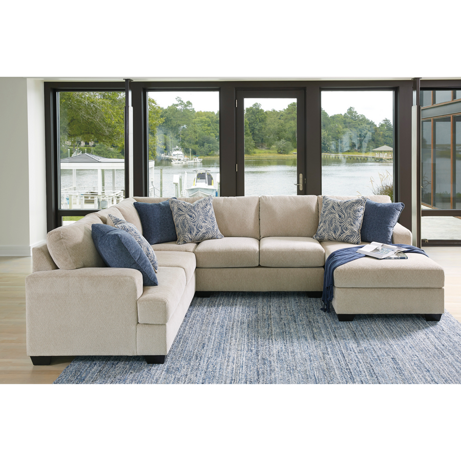 Includes 5 pieces: left-arm facing corner chaise, armless chair, right-arm facing loveseat, wedge and armless sofa;"Left-arm" and "right-arm" describe the position of the arm when you face the piece;Corner-blocked frame;Loose, reversible cushions;High-resiliency foam cushions wrapped in thick poly and cotton fibers;Accent pillows included;Pillows with blended feather inserts;Polyester upholstery;Exposed feet with faux wood finish;Platform foundation system resists sagging 3x better than spring system after 20,000 testing cycles by providing more even support ;Smooth platform foundation maintains tight, wrinkle-free look without dips or sags that can occur over time with sinuous spring foundations