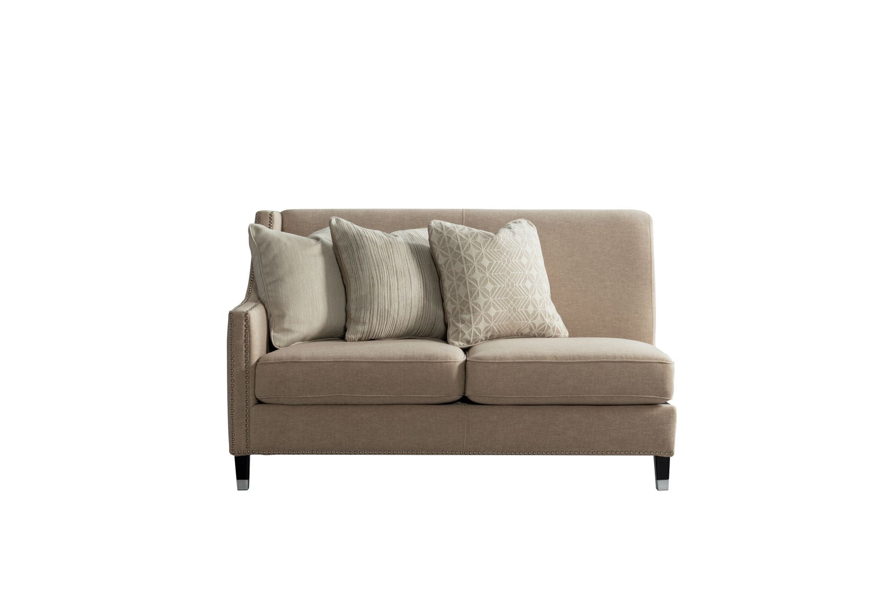 Enjoy spending time with family or friends in this inviting Twilight Beige Sectional by Roots Furniture. This chic sectional is very modern and unique, perfect for impressing while decompressing. With creamy beige accents, clean lines, and stylish patterned cushions, you won't find another piece that combines ideal poshness with perfect softness.