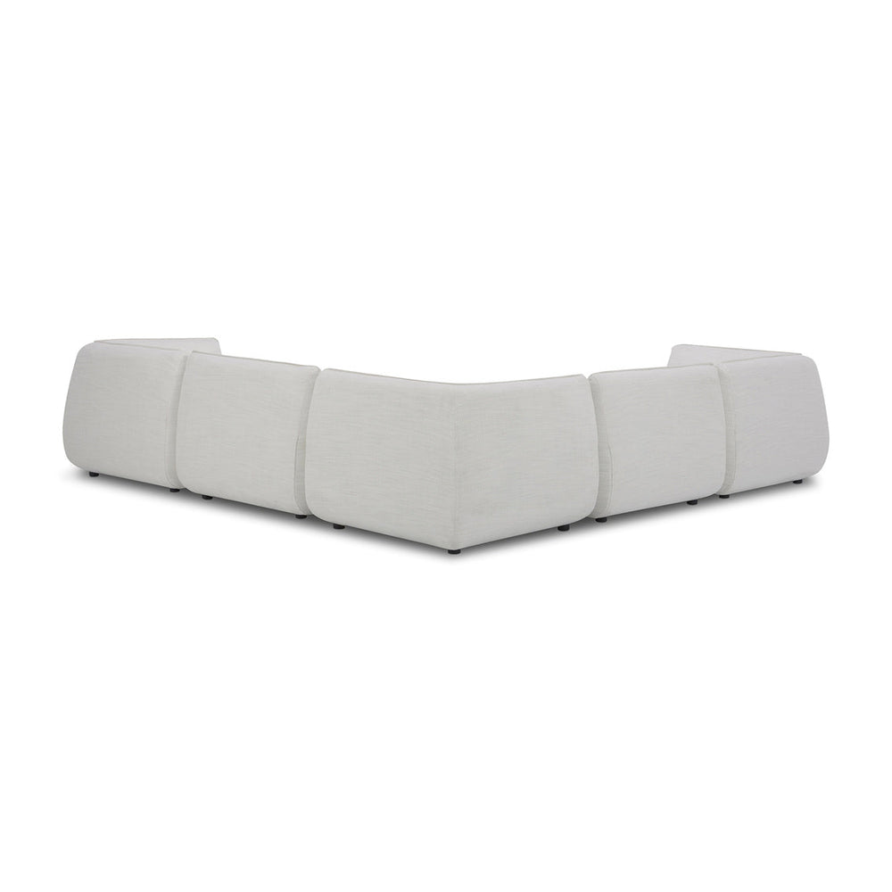 Float on with Zeppelin. Featuring a low-slung, 70’s inspired silhouette, this modular sectional collection’s comfort-driven intention features gentle curves and a subtle floating base design, lending to a sense of weightlessness. Ready to configure into any space, Zeppelin’s sumptuous salt stone white upholstery provides a refined texture, while plump high-density foam and polyfill cushions ensure a luxurious seat. The Zeppelin collection is both breathtakingly future-facing and confidently retro. Available in leather or fabric upholstery in our classic modular configurations or individually as a corner chair, slipper chair, and ottoman.