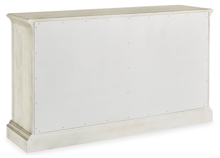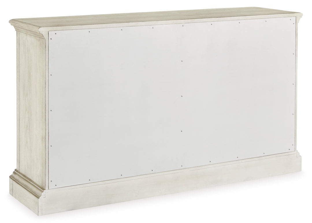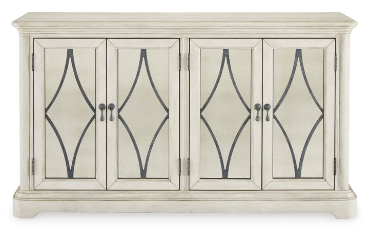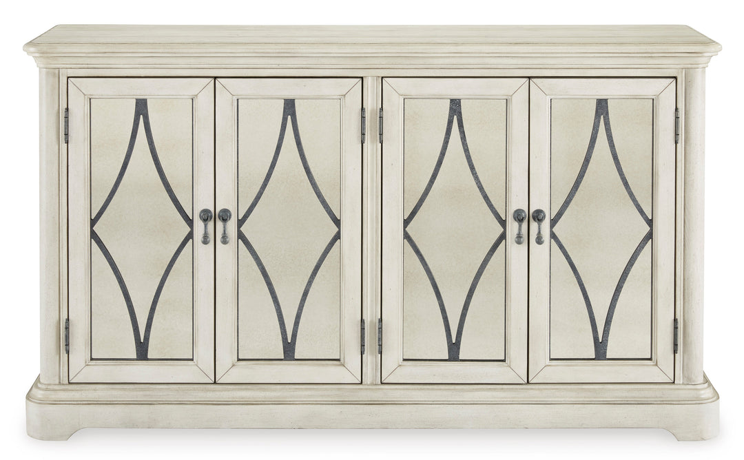 Add a touch of romance to your home with the Arlendyne dining server. Its painted finish and shapely silhouette are all about easy elegance. This wide server turns the spotlight on antiqued mirrored doors with overlay fretwork, concealing plenty of storage while adding a dash of sophistication and upscale luxury.
