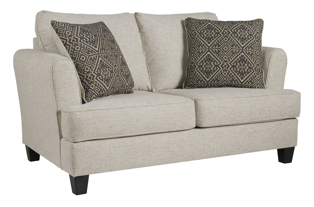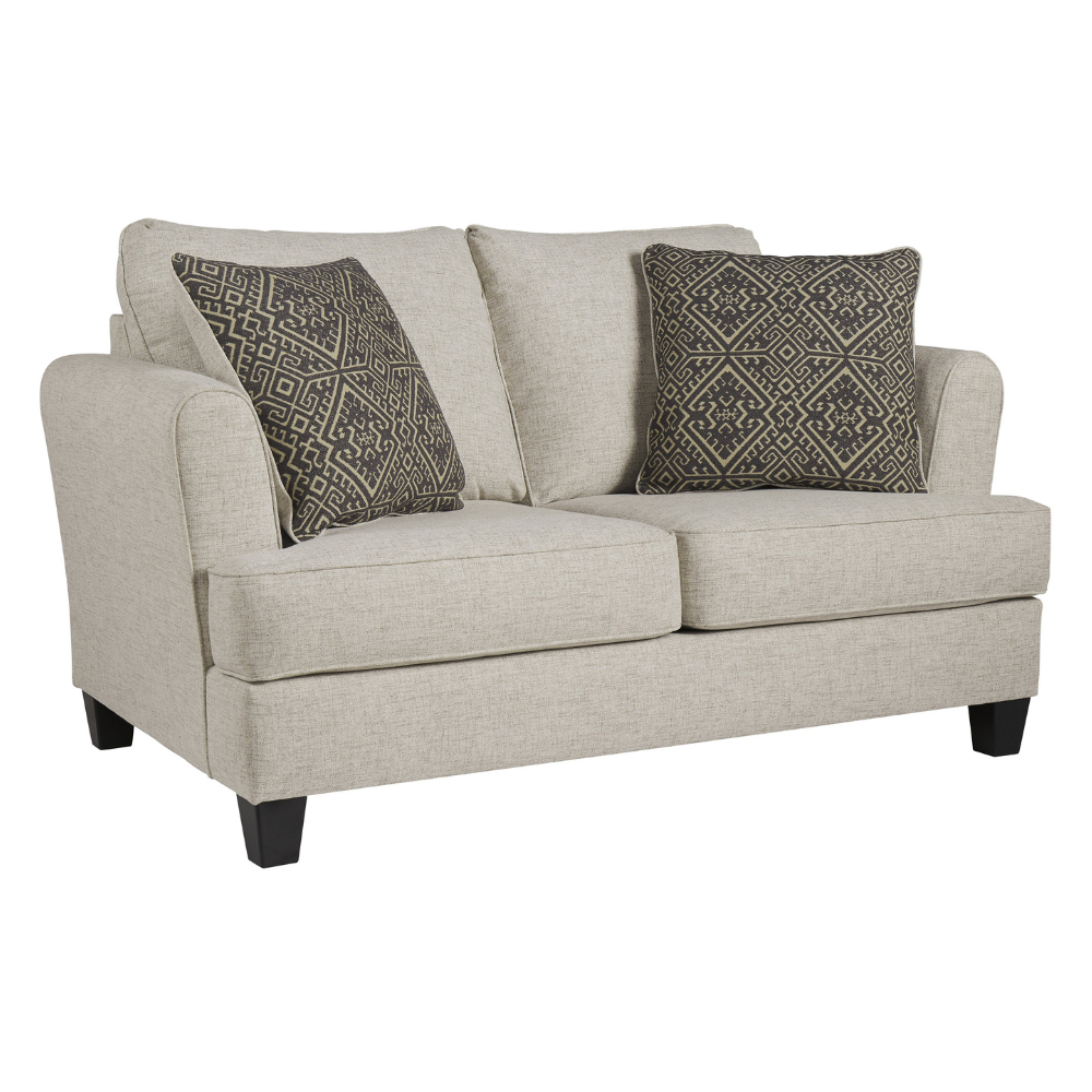 Whether you’re creating a warm and cozy modern farmhouse or cool and contemporary escape, the Alcona loveseat is sure to look right at home. High armrests with a rounded track design provide a chic, sheltering effect. Light linen-tone upholstery is a beauty to behold.