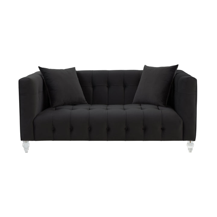 Our Bea Loveseat is a true beauty. This rich velvet upholstered piece is designed with a deep seat, luxe tufting, and Lucite legs. Bea adds style and color to any room. This vibrant piece comes in sofa size and multiple color options.