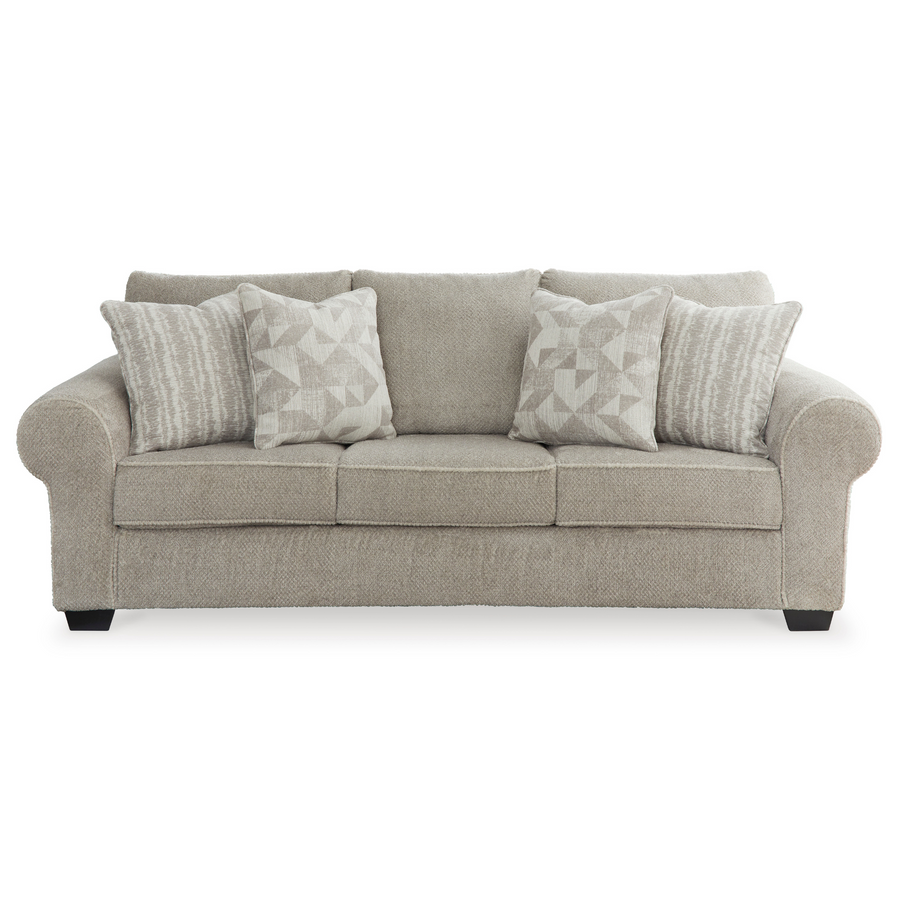 Corner-blocked frame;Reversible seat and attached back cushions;High-resiliency foam cushions wrapped in thick poly fiber;Accent pillows included;Pillows with soft polyfill;Polyester upholstery;Exposed feet with faux wood finish;Platform foundation system resists sagging 3x better than spring system after 20,000 testing cycles by providing more even support;Smooth platform foundation maintains tight, wrinkle-free look without dips or sags that can occur over time with sinuous spring foundations