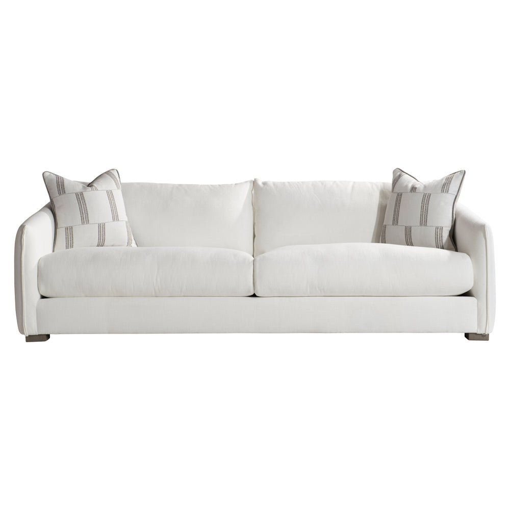 The Germain right arm loveseat delivers a rich look with its clean, transitional design. With a sloped arm and plush cushions, it offers unprecedented comfort. Subtle and sophisticated, the welting highlights the fine quality of the upholstery. Blendown throw pillows add a finishing touch.