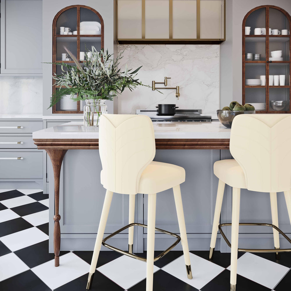 | Features | Handmade by skilled furniture atisans Sumptuous velvet upholstery Available in multiple colors Available in bar and counter height options Footrest height: 11" |