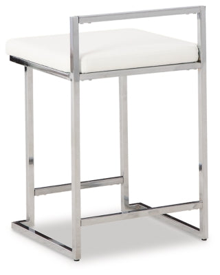 Wowing with a slim but sturdy profile and sculptural design, the Madanere counter height bar stool is sure to whet your appetite for ultra-contemporary style. Its comfortably cushioned seat is covered in a fabulous white faux leather, while the metal frame’s chrome-tone finish provides visual contrast.