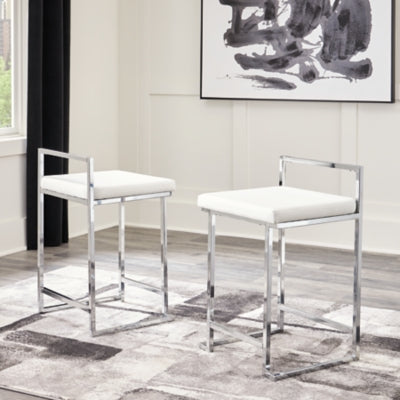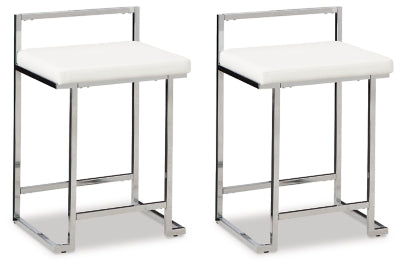 Upholstered Stool (2/CN),Light,Made with metal;Polished chrome-tone plated finish;Faux leather upholstery;Foam cushion;Integrated footrest;Assembly required