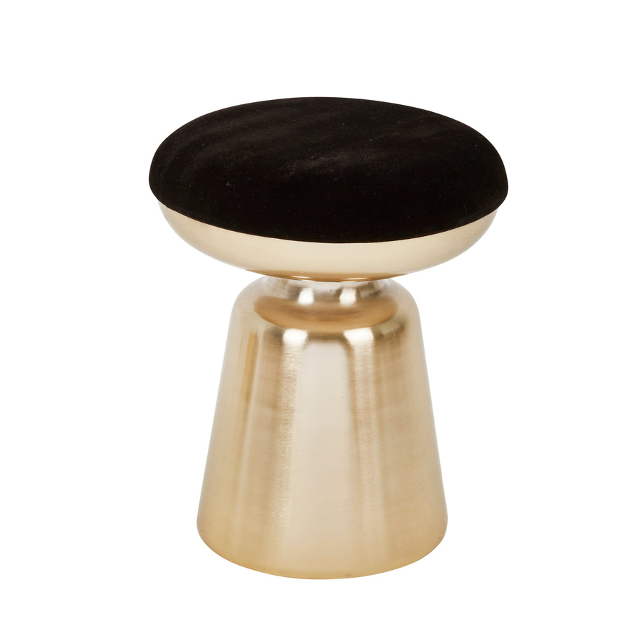 METAL 18" CYLINDER GOLD STOOL,BLACK CUSHION