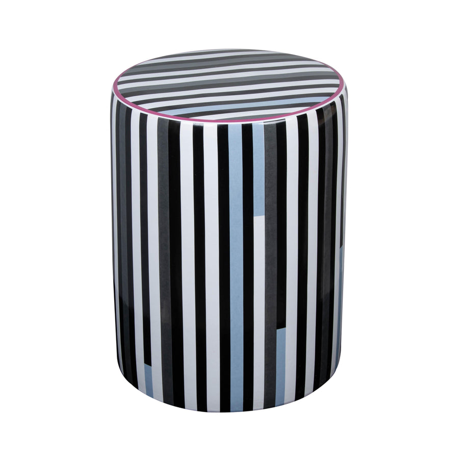 Introducing the versatile Taurus Ceramic Stools, available in three eye-catching prints: Garden, Pink Strokes, and Modern Stripes. These multifunctional pieces serve as stylish side tables and can easily be pulled over as additional seating. Their vivid colors and durable construction provide a delightful punch of style that can brighten up any corner, whether indoors or in covered outdoor settings.